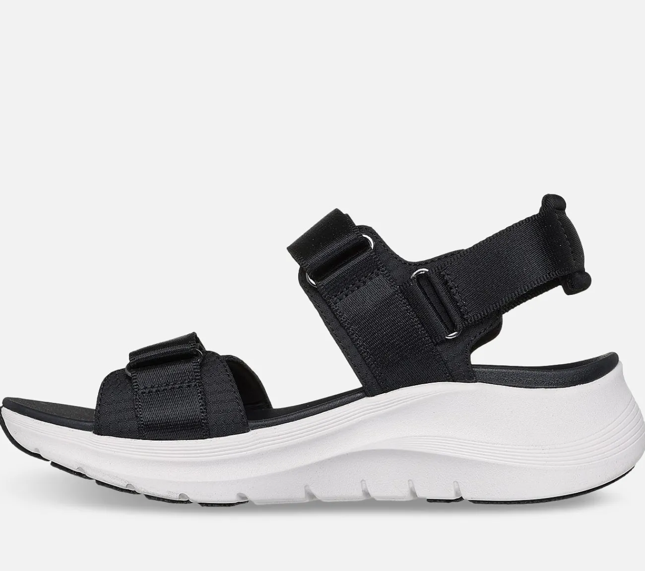Nyd solen i heldagskomfort med Skechers Arch Fit 2.0 – Go-Getter. Denne platformssandal med justerbart dobbeltbånd med slingback-design har en polstret Arch Fit indersål.