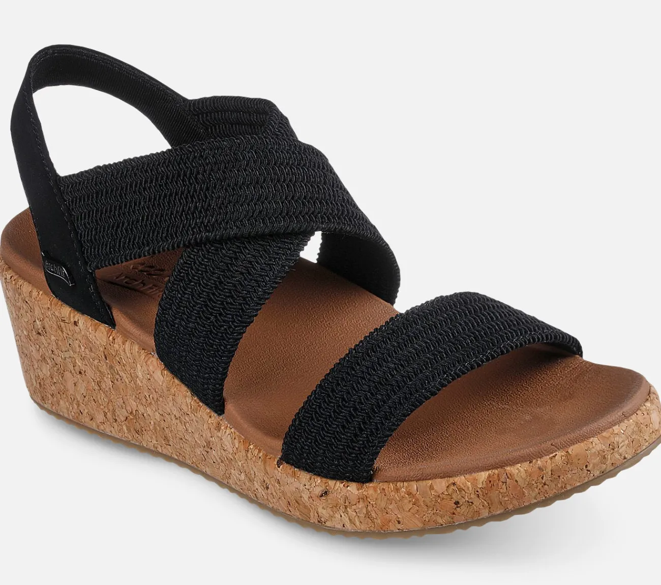 Slip-on sandal med kilehæl og elastiske tekstil remme, støttende og støddæmpende Arch Fit fodseng