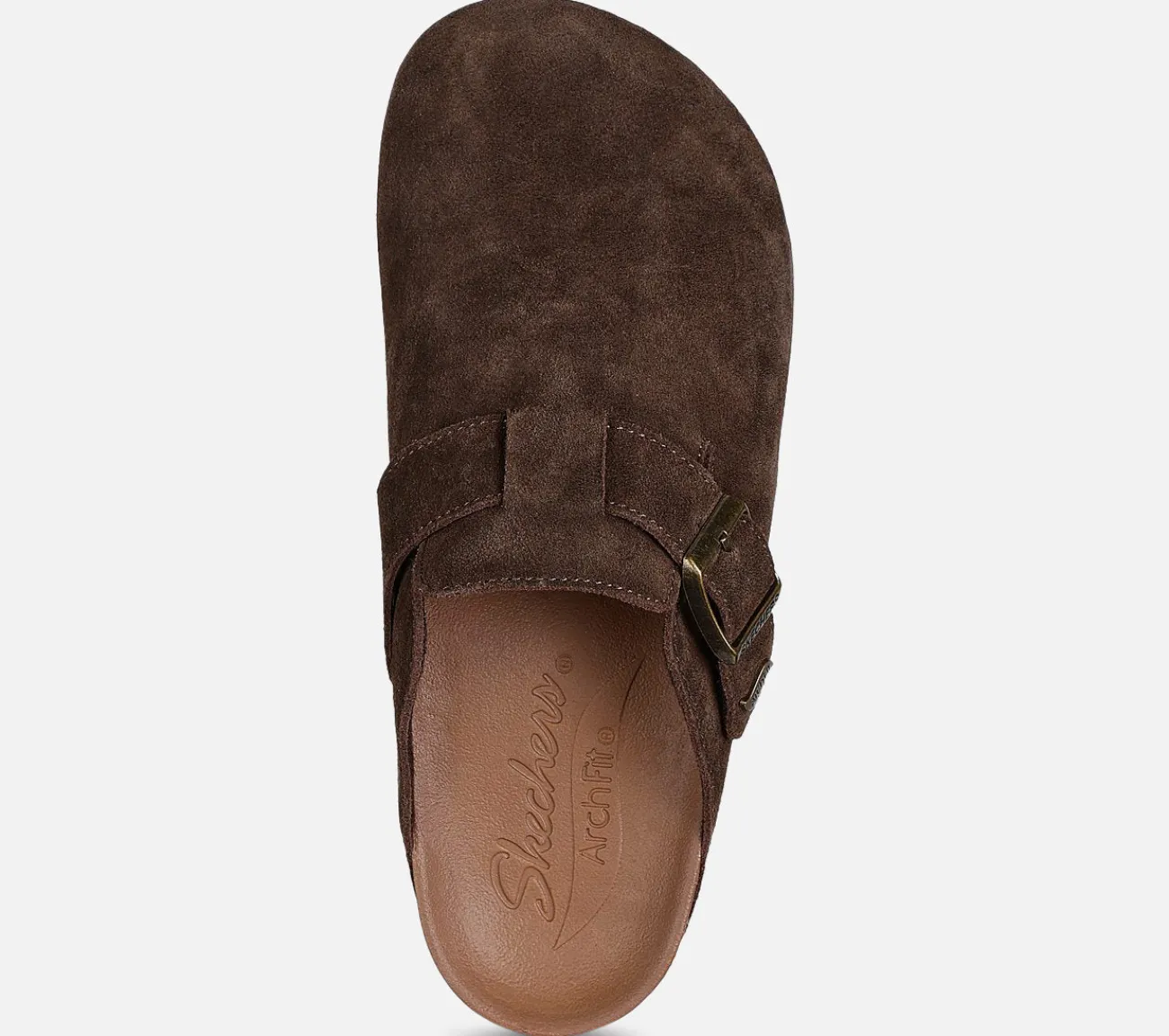 Afslappet boho-stil og komfort forenes i Skechers Relaxed Fit: Arch Fit Granola. Denne sko har en overdel af ægte ruskind med spænde detalje og en støttende Arch Fit formet fodseng med Luxe Foam polstring.