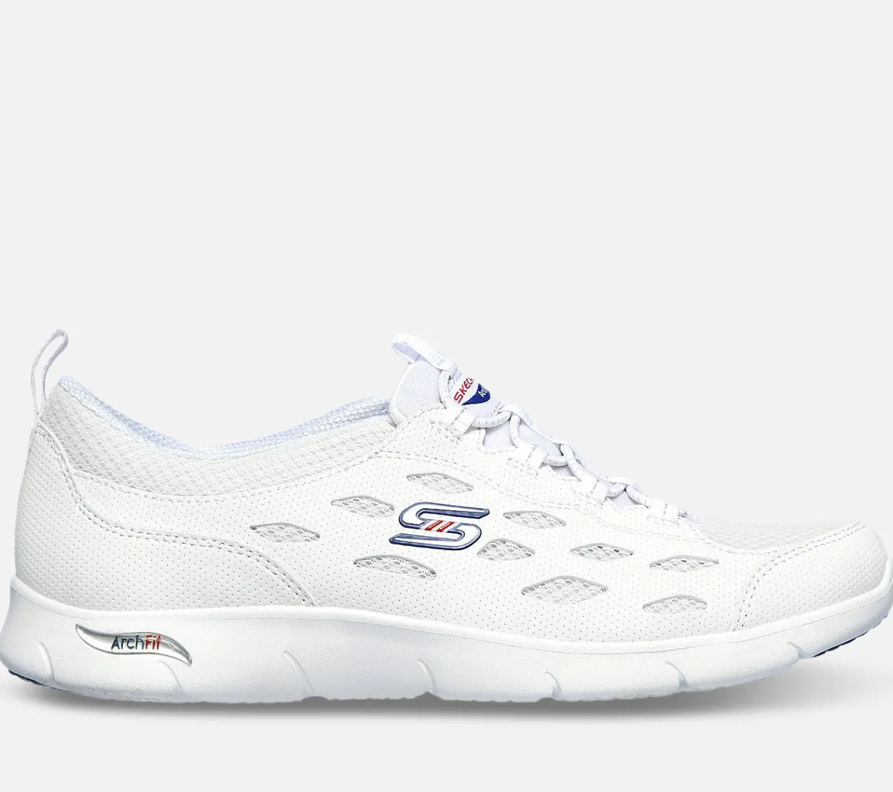 Fleks i sporty stil og støttende komfort med Skechers Arch Fit – Refine. Denne pull-on har et bungee-snøret frontpanel i syntetisk duraleather og åndbart atletisk mesh strik overdel, aftagelig polstret Arch Fit indersål og en let polstret mellemsål.