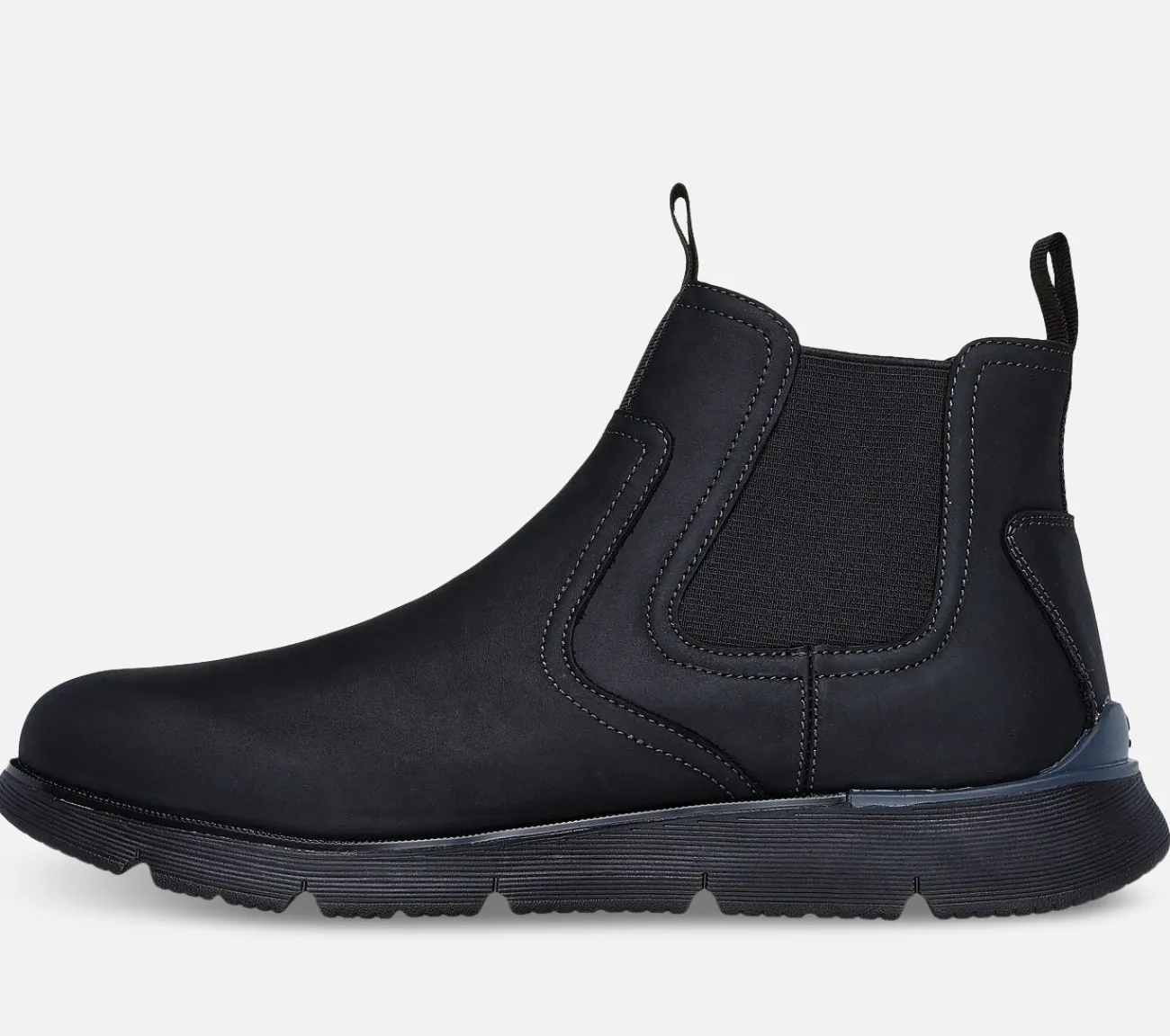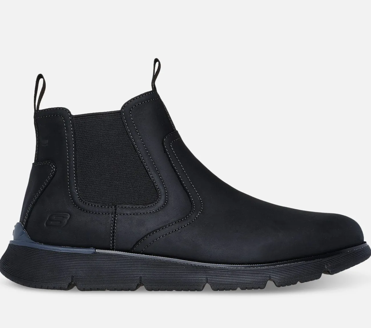 Opnå klassisk alsidighed og moderne komfort i Skechers Augustino – Paulo. Denne Chelsea-støvle har en læderoverdel med en rund tå, en kul infunderet Skechers Air-Cooled Memory Foam indersål og en Skechers Goga Mat Arch for ekstra støtte.