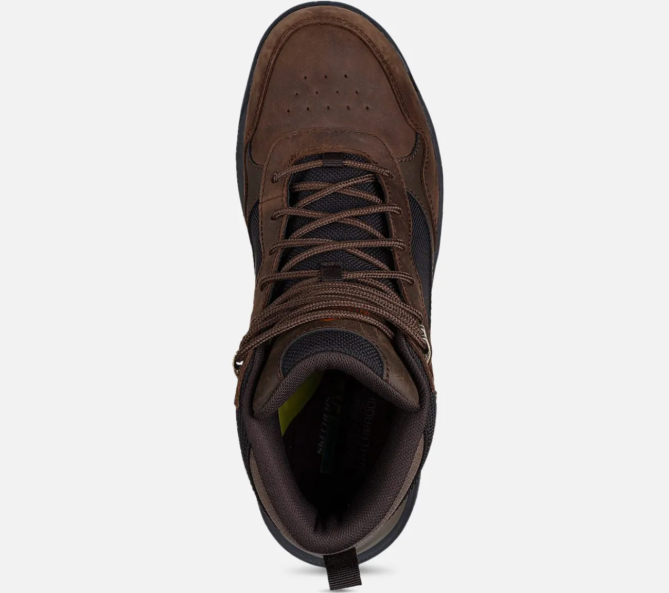 Gå ud i alt slags vejr med Skechers Cambert – Harlan. Denne vandtætte udendørs støvle har en mesh og læder overdel med snørebånd, Skechers Air-Cooled Memory Foam indersål og Skechers Goga Mat Arch polstring for ekstra støtte. Indersålen er kul infunderet og neutraliserer potentielle lugte.