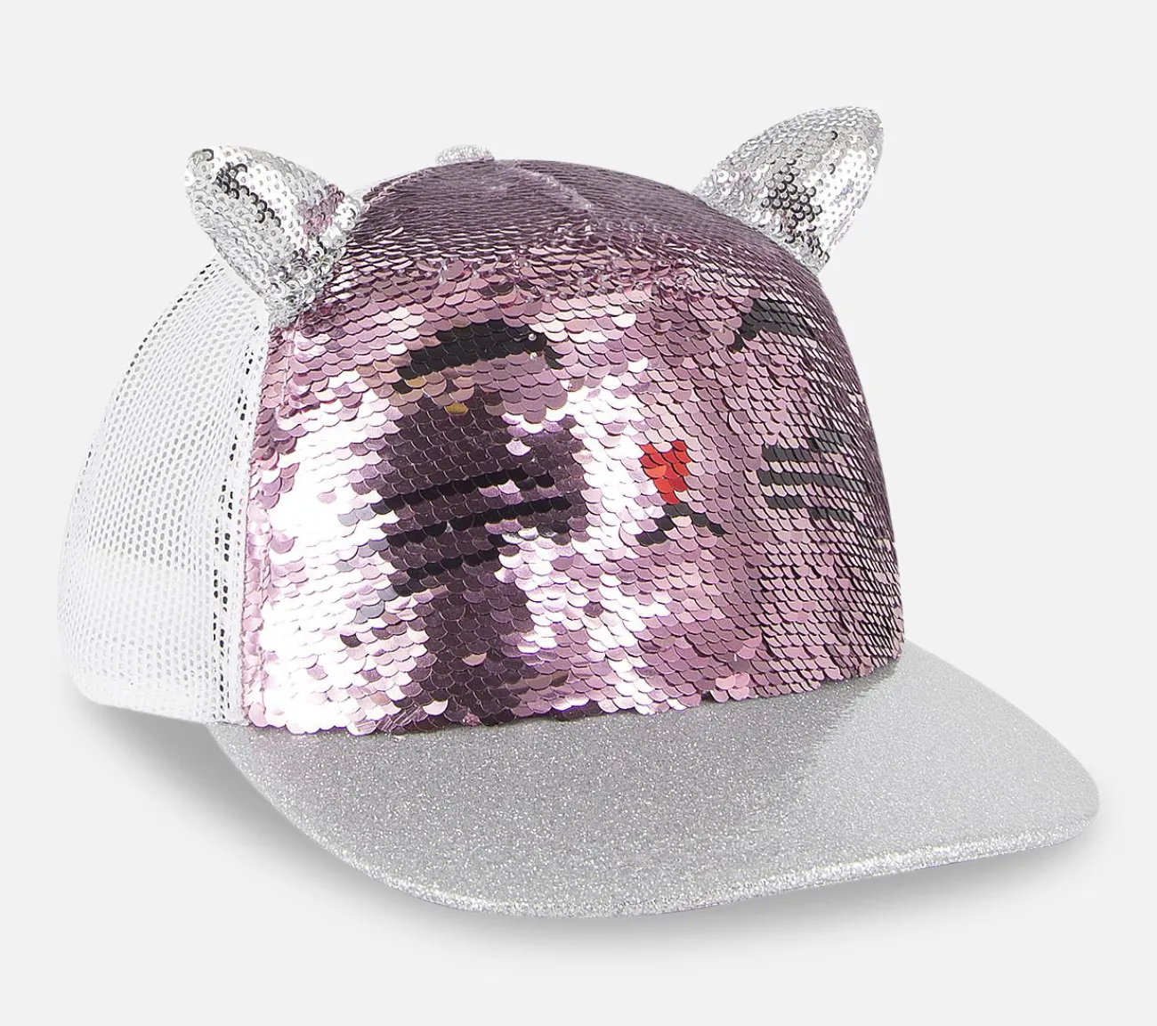 Fuldfør looket helt purr-fekt med Skechers Accessories Caticorn Sequin Trucker Hat. Blødt stof i en justerbar trucker-kasket med pailletdesign af et katteansigt på frontpanelet og øredetaljer.