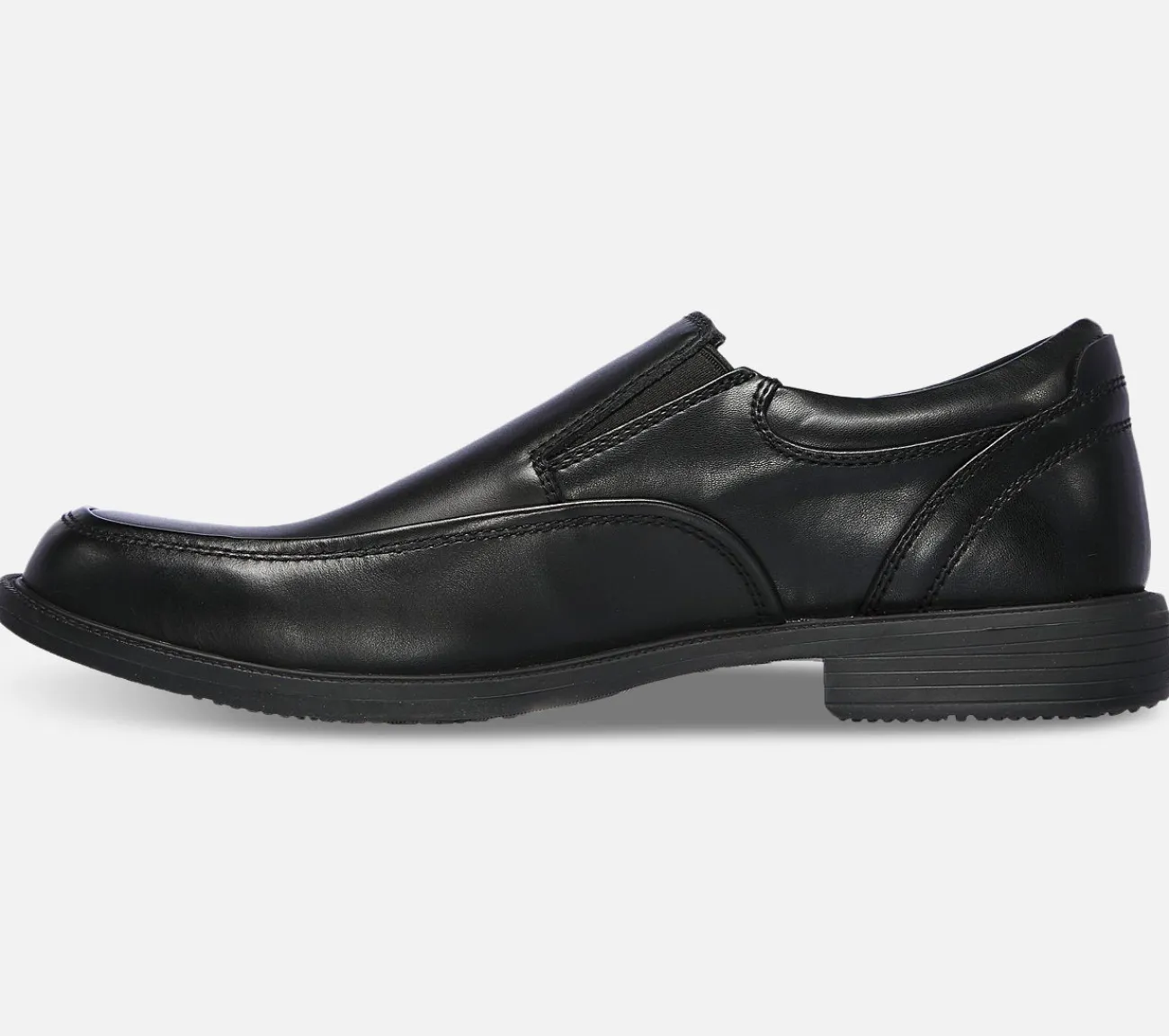 Se velklædt ud i enhver situation med Skechers Dreston – Ratlon. Dette vandtætte design har en glat overdel i premium læder i en afslappet slip-on mokkasin med moc-toe og en Skechers Air Cooled Memory Foam indersål.