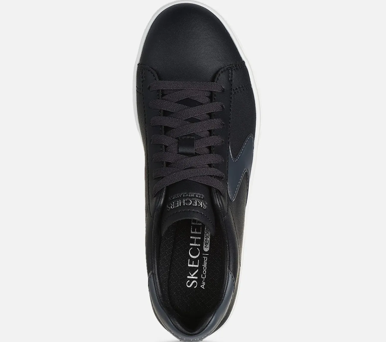 En moderne klassisk stil kombineres med komfort i Skechers Eden LX – Top Grade. Dette snøredesign har en overdel af syntetisk duralæder med en polstret Skechers Air-Cooled Memory Foam® indersål.