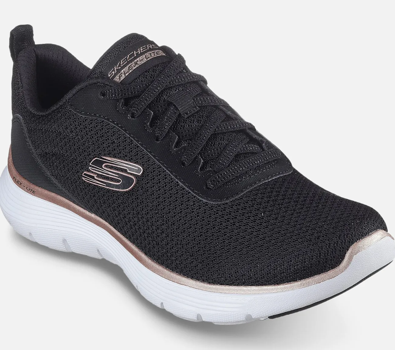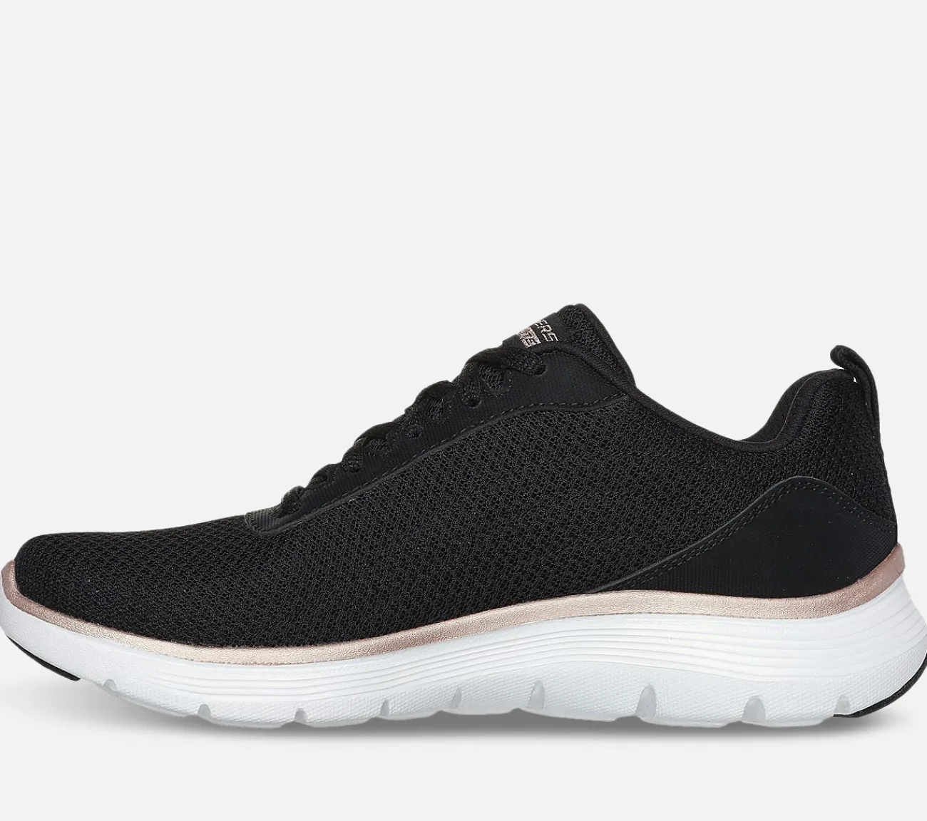 Vis din sporty athleisure-stil frem i komfort med Skechers Flex Appeal 5.0 – Uptake. Denne veganske sko har en polstret atletisk mesh-overdel med metalliske detaljer og en polstret Skechers Air-Cooled Memory Foam indersål.