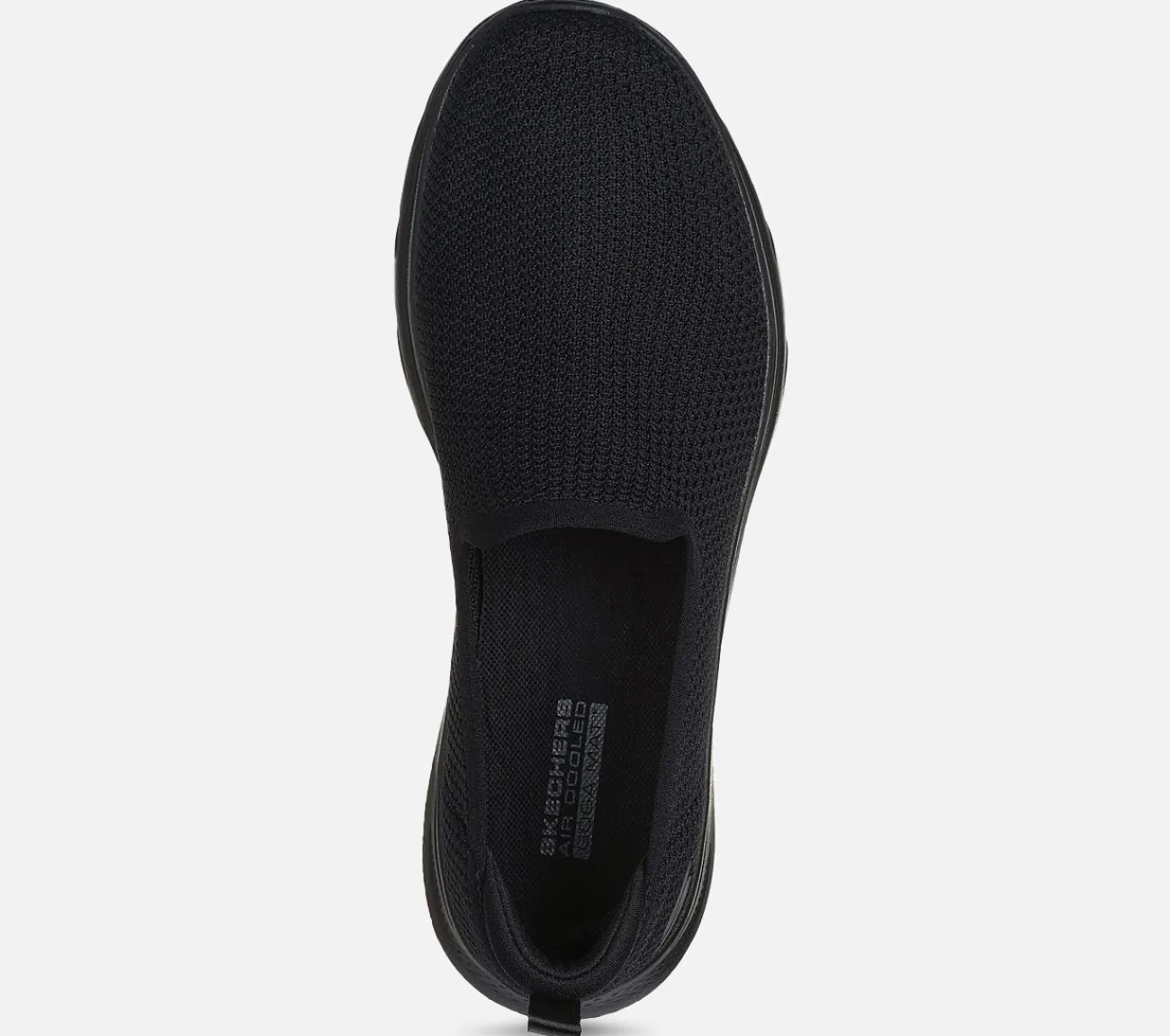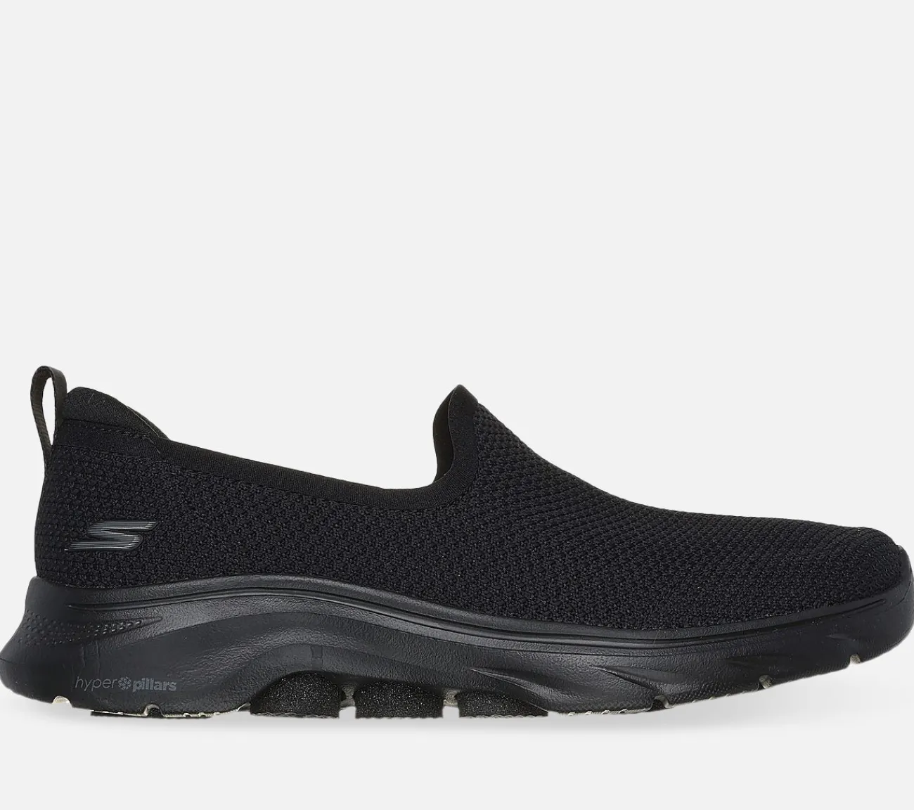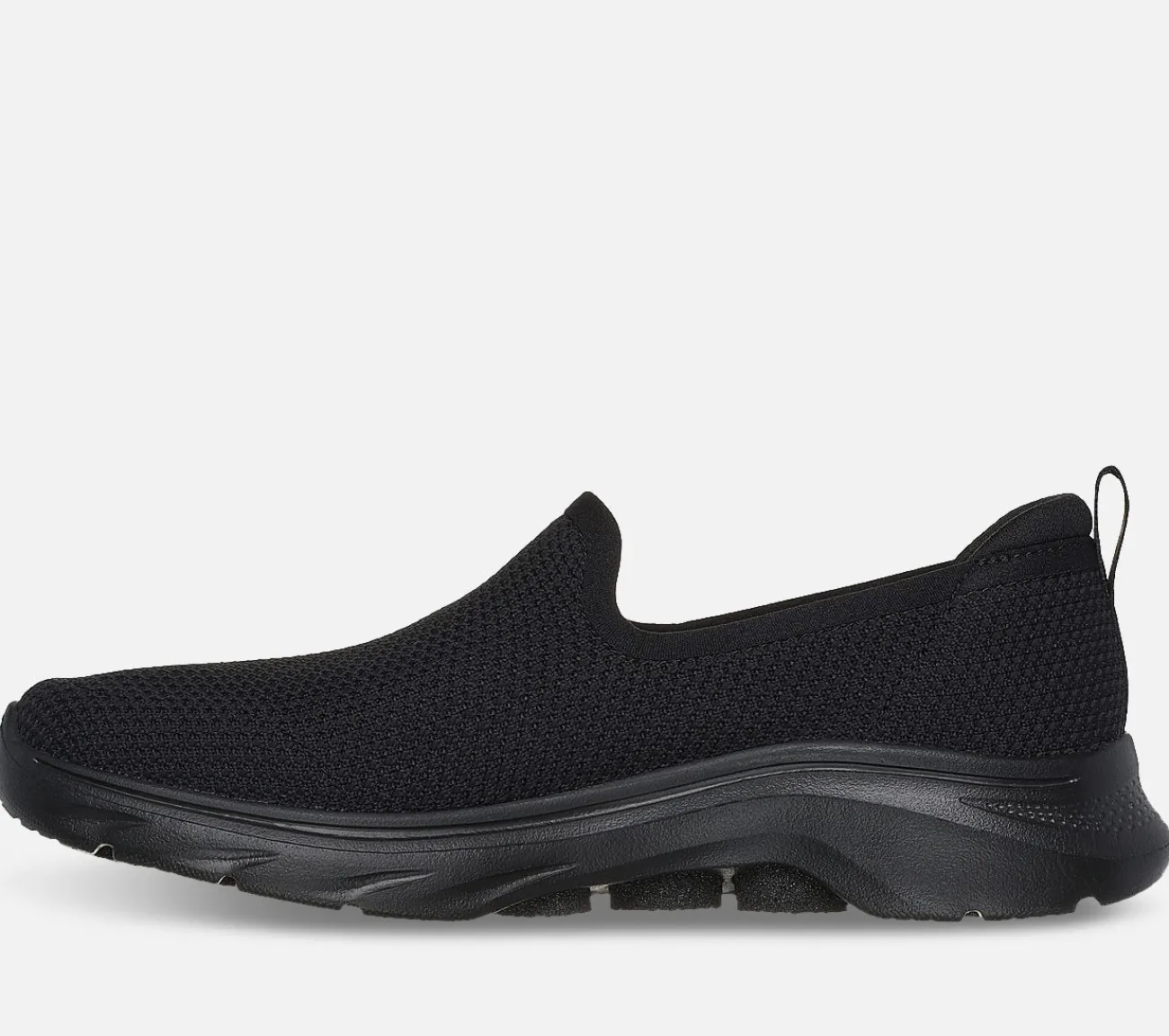 Gå i let komfort med Skechers GO WALK 7 – Ivy. Denne snøreløse veganske sko har en strækbar strikket overdel med en Skechers Air-Cooled Goga Mat indersål, let ULTRA GO polstring og high-rebound Hyper Pillar Technology for ekstra støtte.