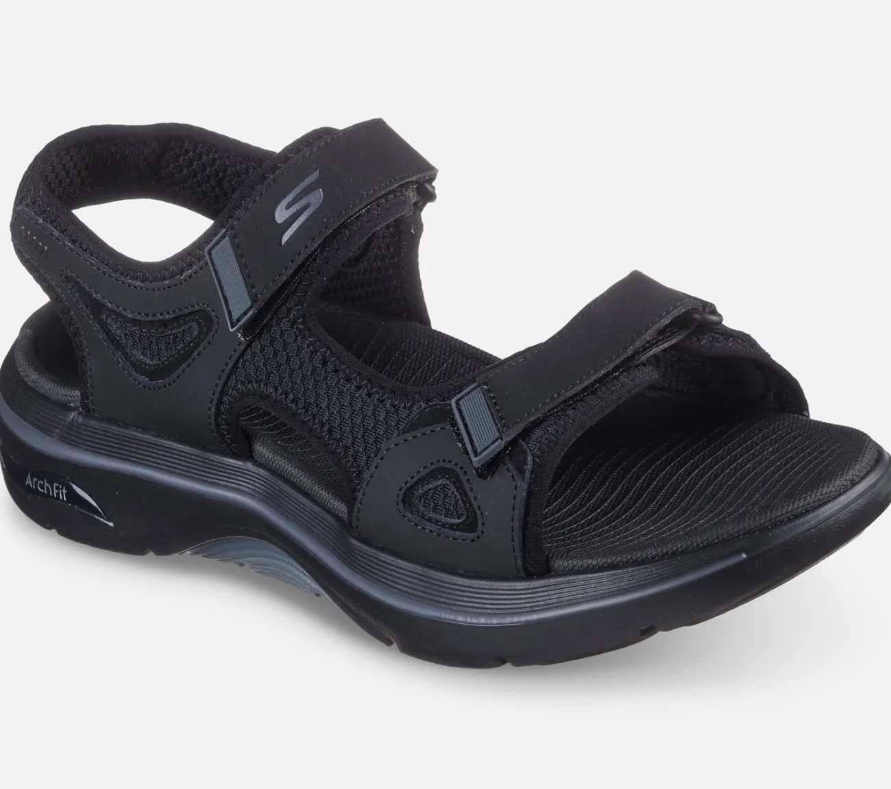 Gå med luftig stil og komfort med Skechers GO WALK Arch Fit 2.0 Sandal – Capistrano. Denne sandal med rem har en overdel med justerbar rem, en Arch Fit indersål, en konturformet Goga Mat fodseng og let ULTRA GO polstring.