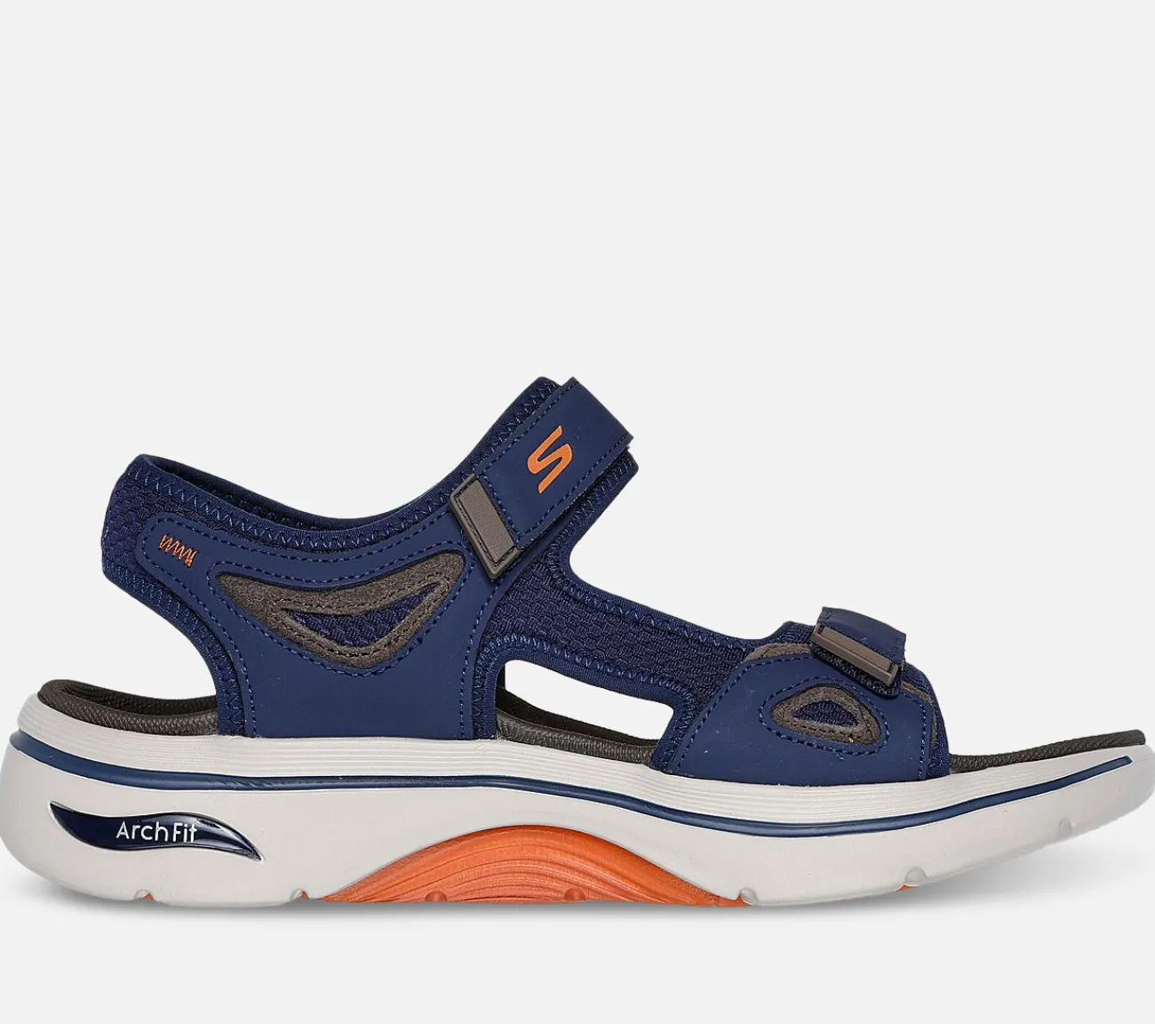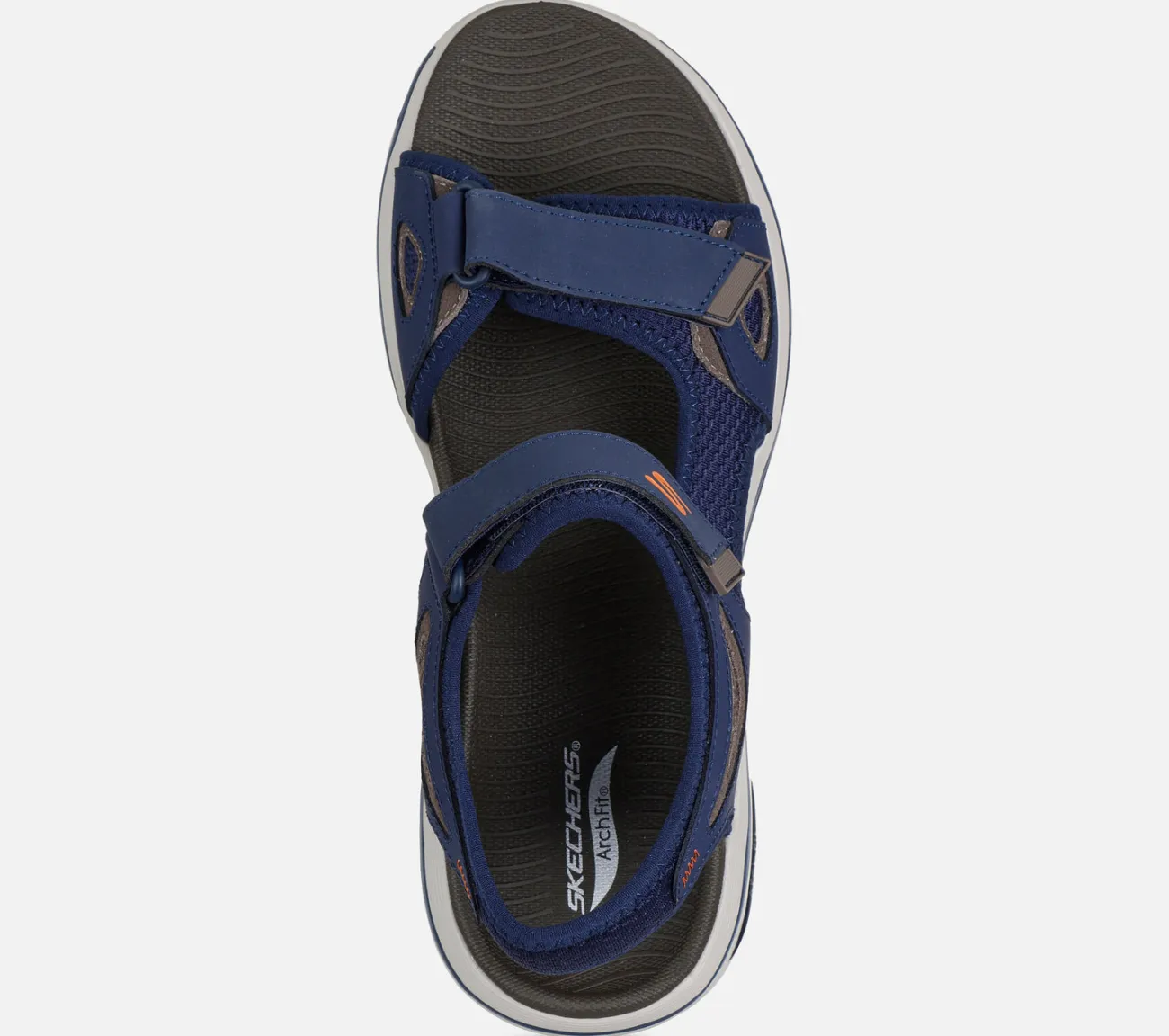 Gå med luftig stil og komfort med Skechers GO WALK Arch Fit 2.0 Sandal – Capistrano. Denne sandal med rem har en overdel med justerbar rem, en Arch Fit indersål, en konturformet Goga Mat fodseng og let ULTRA GO polstring.