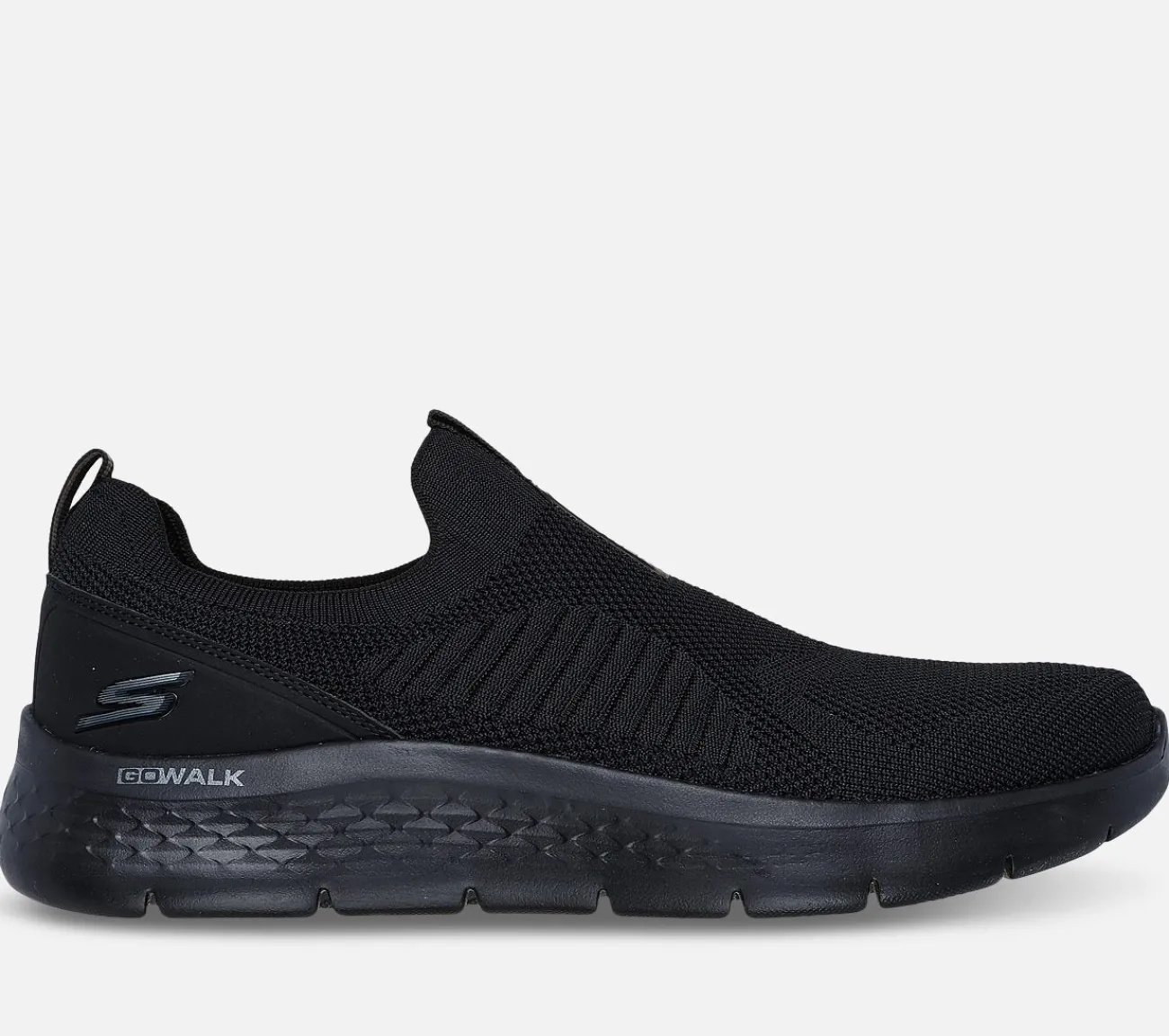 Få et ekstra skridt af komfort med GO WALK Flex – Peerless. Denne sko har en konstrueret strikket overdel med en åndbar Skechers Air-Cooled Goga Mat indersål og let ULTRA GO polstring.