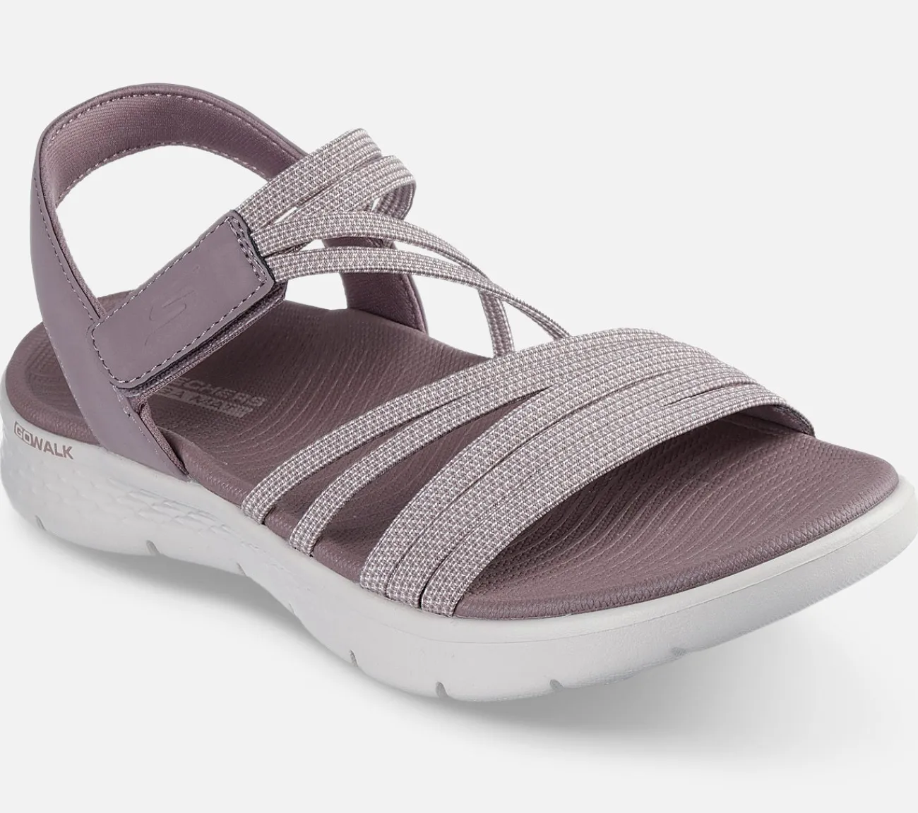 Imødekom sommeren med ubesværet komfort i Skechers GO WALK Flex Sandal – Emma. Denne elegante sandal har en tekstiloverdel med justerbarrem, en kontureret Goga Mat indersål og let ULTRA GO polstring.