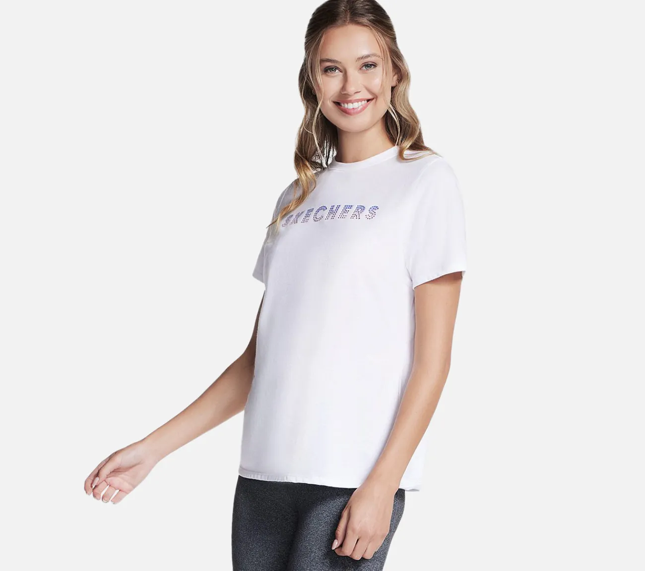 Slap af i din foretrukne komfortstil med Skechers Gradient Short Sleeve Tee. Denne klassiske t-shirt er fremstillet af det åndbare og superbløde SKECH JERSEY™-stof og har et gradient Skechers-grafik midt på brystet.