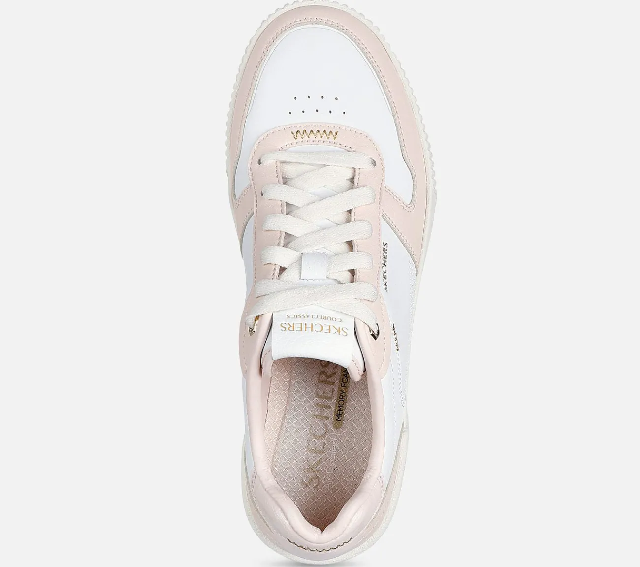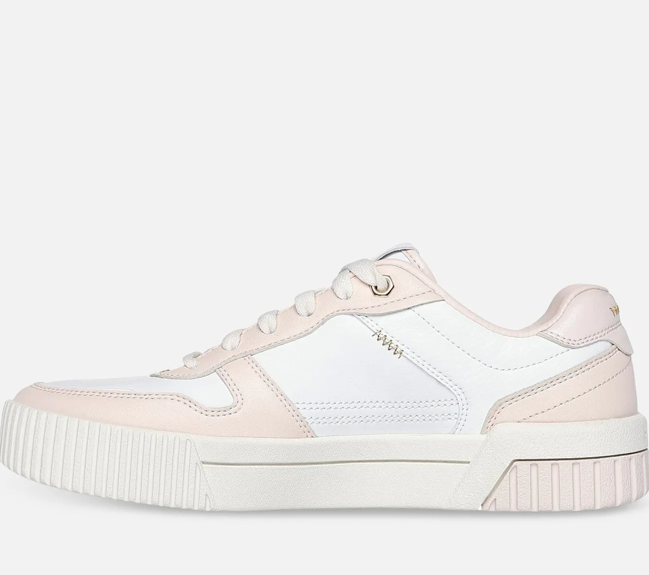 Oplev klassisk street stil i Skechers Jade – Best In Class. Denne snøresko har en duraleather overdel med guldbelagte overlays, en vulkaniseret mellemsål og en polstret Skechers Air-Cooled Memory Foam komfort indersål.