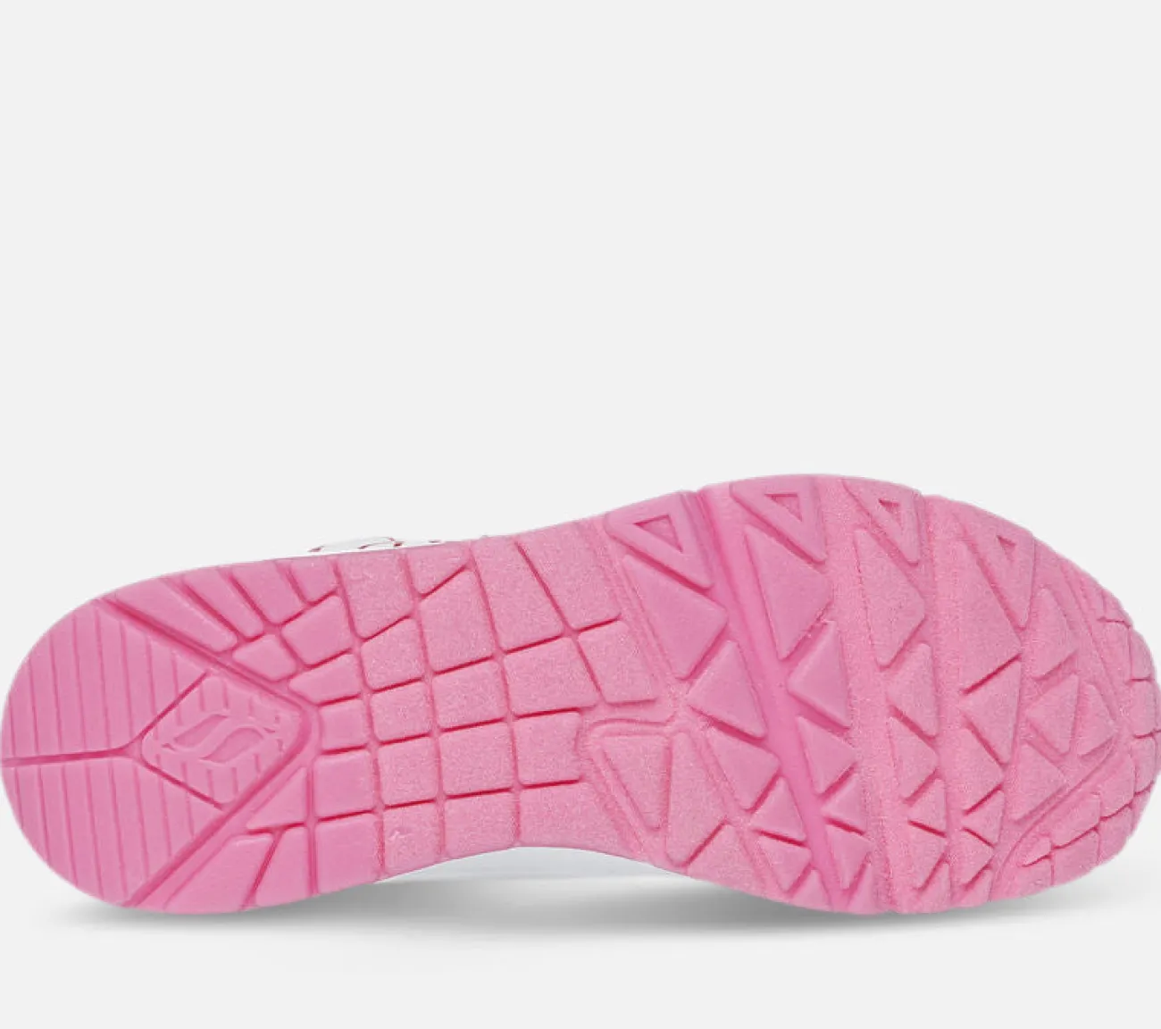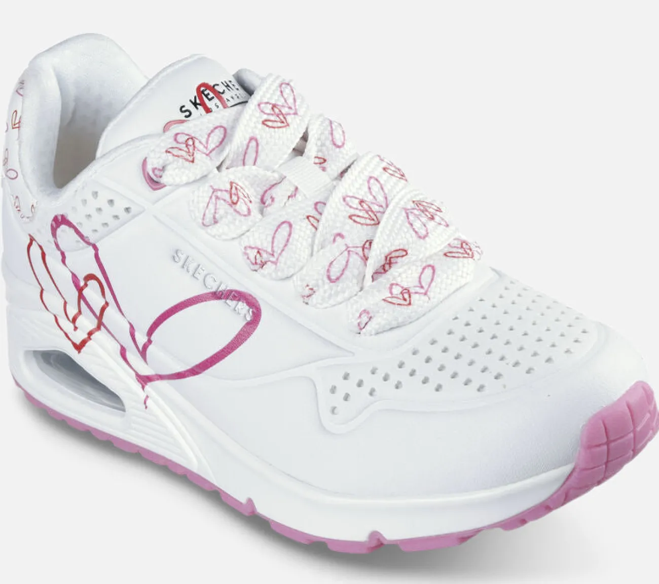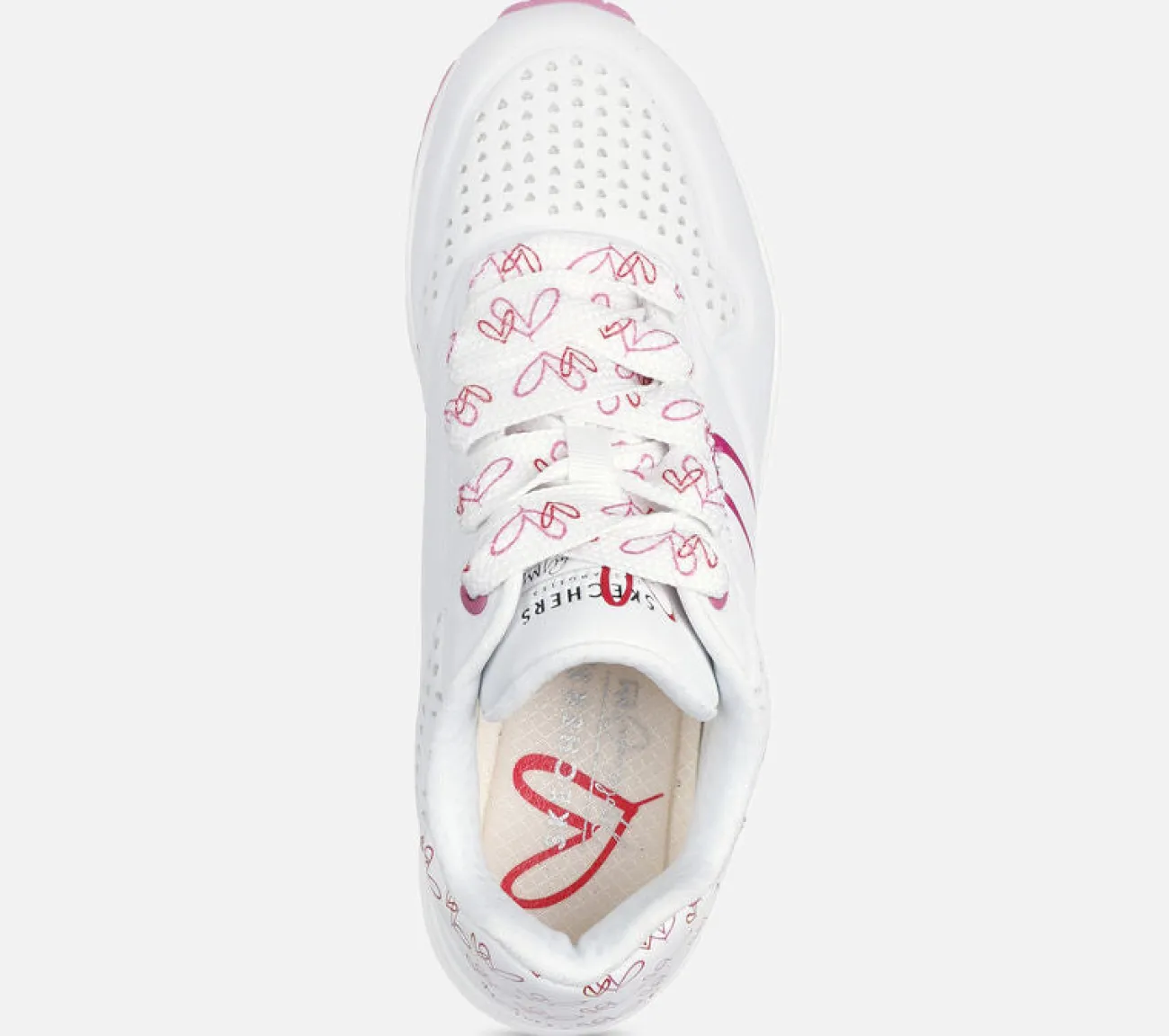 Den internationalt anerkendte muralist James Goldcrown bringer sine ikoniske #Lovewall-hjertedesigns til Skechers i dette inspirerende samarbejde. Vis din kreative stil med Skechers Street™ x JGoldcrown: Uno – Twin Hearts. Denne snørelukke modesneaker har et print af kunstnerens karakteristiske hjertemotiv, overdel i syntetisk durabuck, Skechers Air-Cooled Memory Foam® indersål og en synlig Skech-Air® mellemsål med luftdæmpning.
