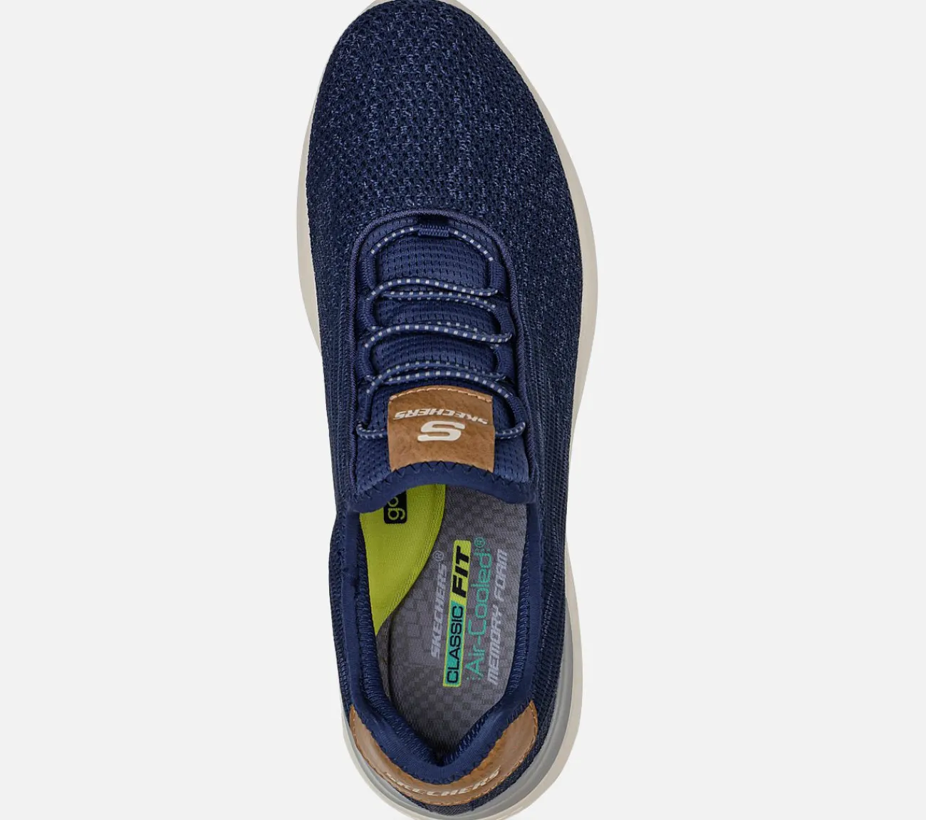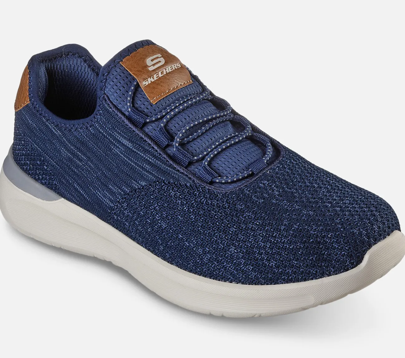 Komfort og sporty, slankt design forenes i Skechers Lattimore – Coringa. Denne Classic Fit slip-on sko har en overdel i mesh-strik med en polstret Skechers Air-Cooled Memory Foam indersål og Skechers Goga Mat Arch for ekstra støtte.
