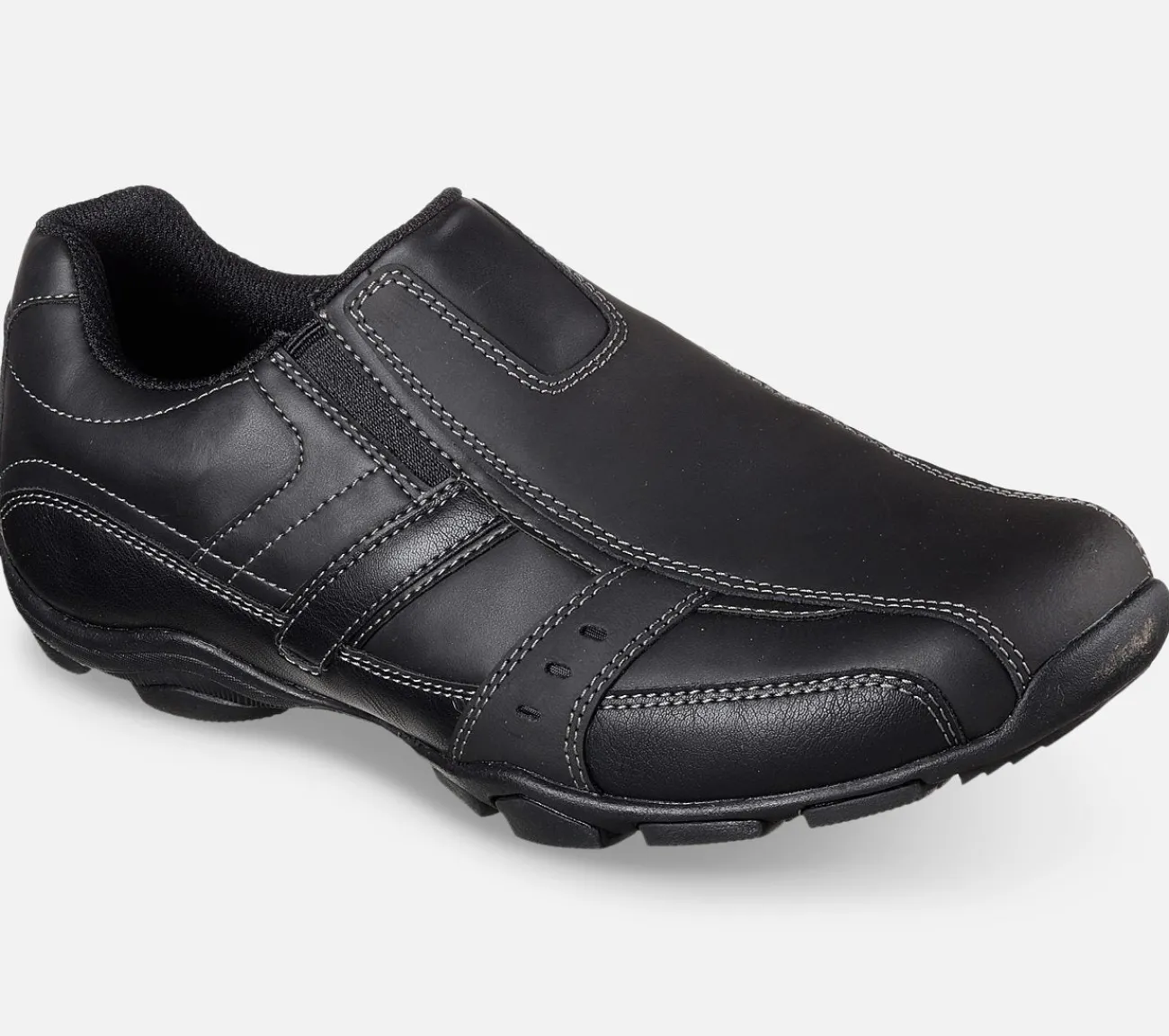 Behagelig komfort med Skechers Marter – Kool Digz herresko. Denne lædersko har dobbelte elastiske paneler, som gør det nemt at tage skoen på og en Skechers Air-Cooled Memory Foam komfort indersål.