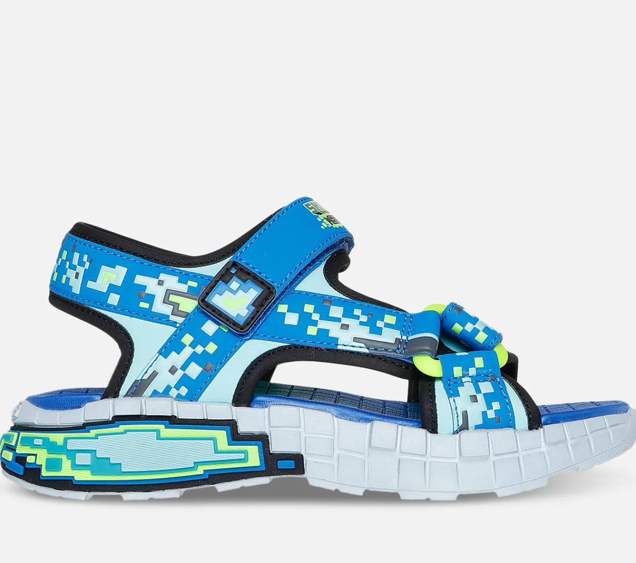 Streetwear og lækkert solskinsvejr finder sammen i Skechers Mega-Splash 4K. Denne tematiske Mega-Craft®-sandal har en overdel med syntetiske remme, Skechers’ justerbare lukning og en sjov teknisk mellemsål.