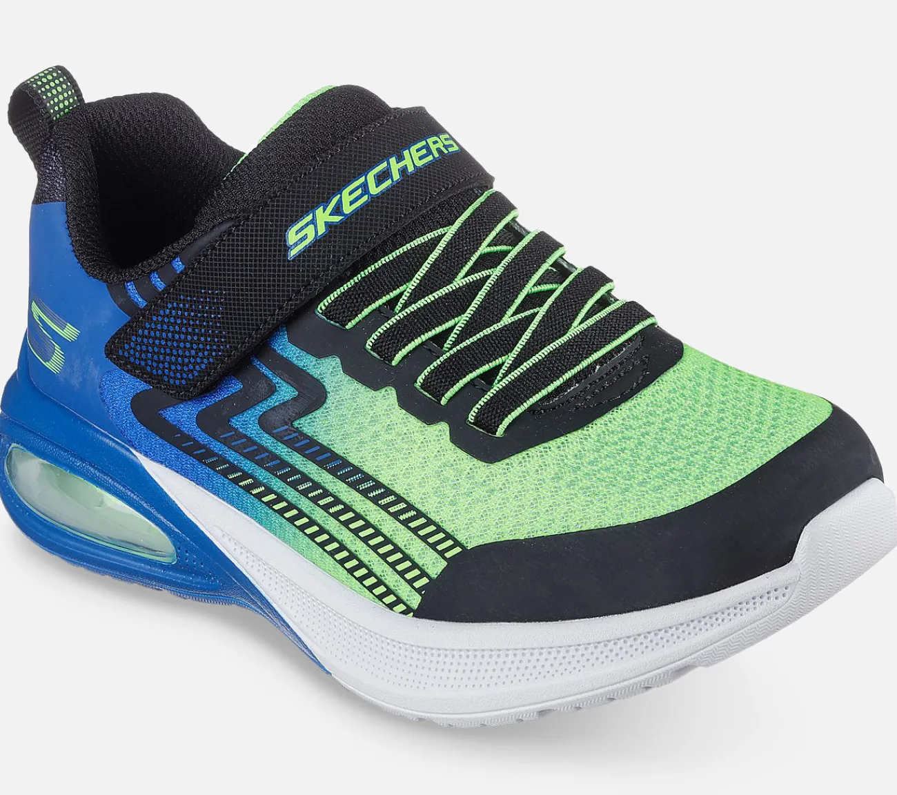 Leg hele dagen i let og komfortabel stil med Skechers Microspec Max Advance. Dette lette design med elastiske snørebånd har en mesh- og syntetisk overdel, Skechers Adaptive Closure, en synlig Skech-Air airbag mellemsål og en polstret komfort indersål.