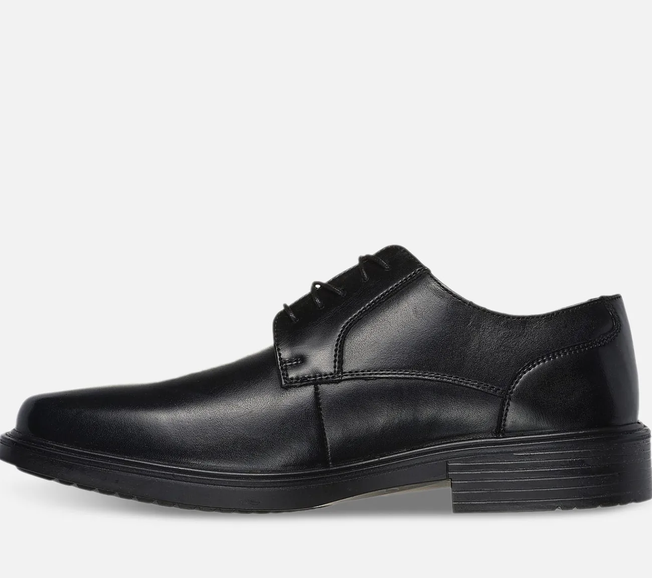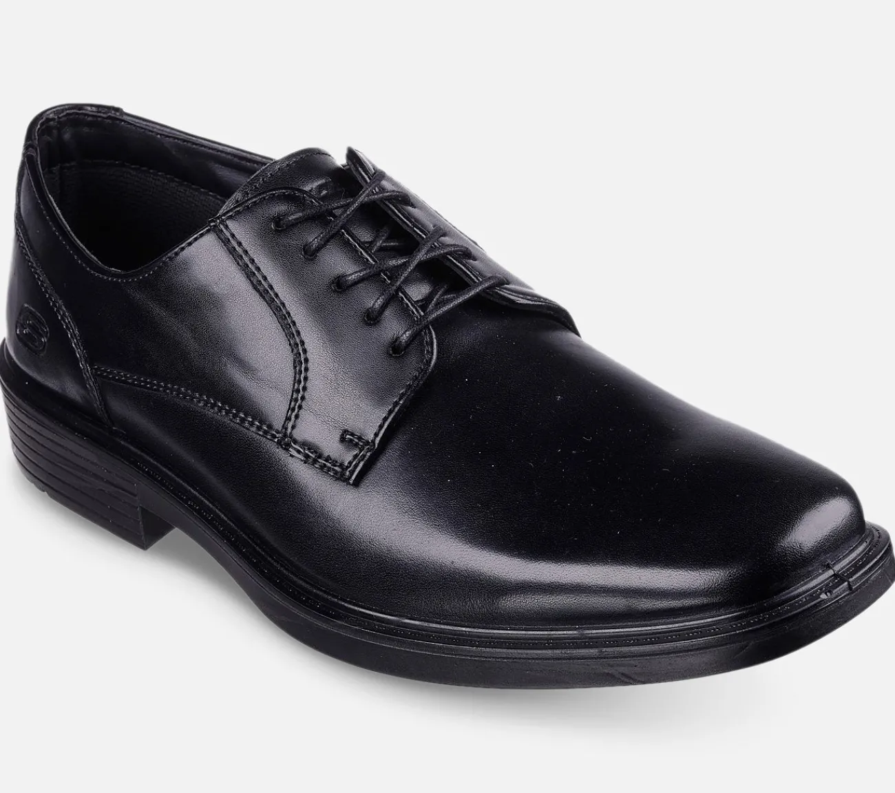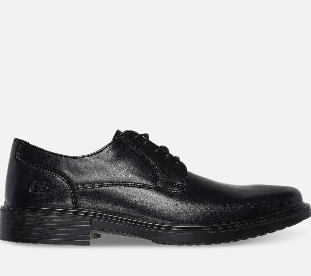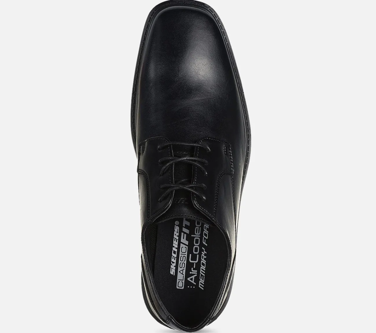 Tilføj et nyt niveau af komfort til dit look med Skechers Miller – Enrico. Dette Oxford-design har en glat læderoverdel med snørebånd og en komfortabel og støttende Skechers Air-Cooled Memory Foam indersål.