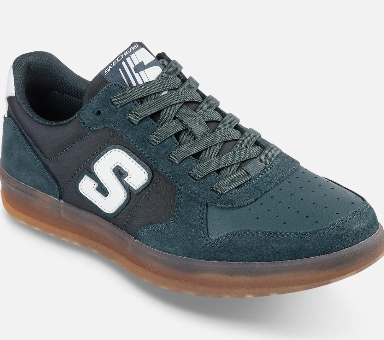 En frisk klassiker kombineres med åndbar komfort i den trendy Skechers New Wave Cup – Calven. Denne sneaker har en overdel af læder og mesh med ruskind, elastiske snørebånd og en Skechers Air-Cooled Memory Foam indersål med kulinfusion.