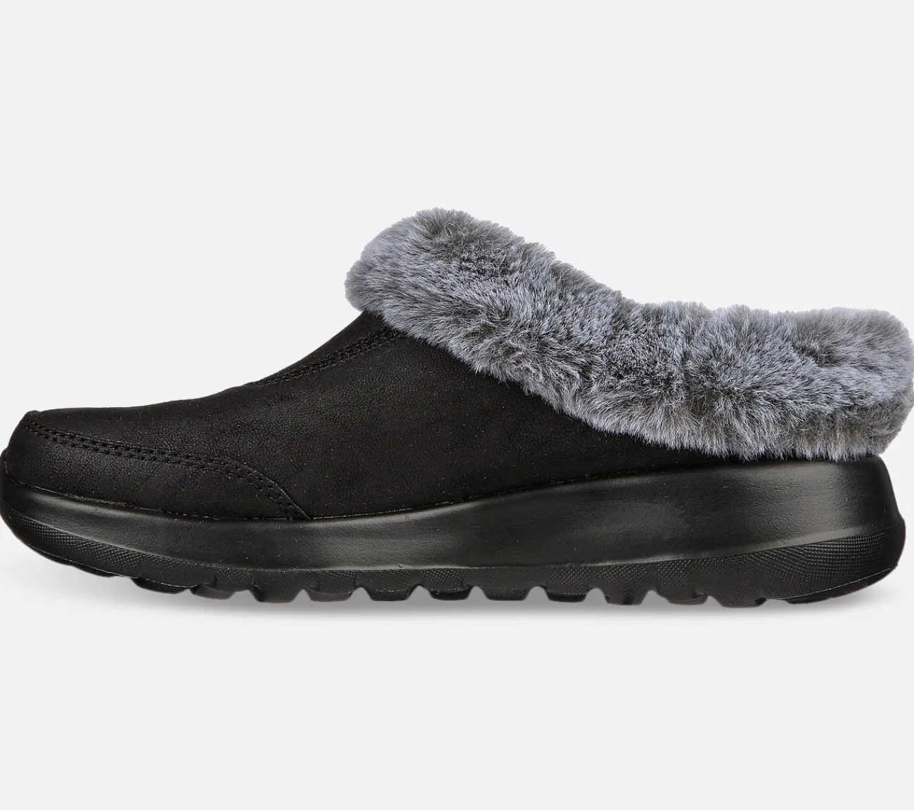 Tilbring sæsonen i komfortabel og hyggelig stil med Skechers On-the-GO Joy – Gratify. Denne afslappede mule-sko har en glat Perform-Tex stofoverdel med faux-pelskant og foring, en Skechers Air-Cooled Goga Mat indersål og let 5GEN mellemsål stødabsorbering.