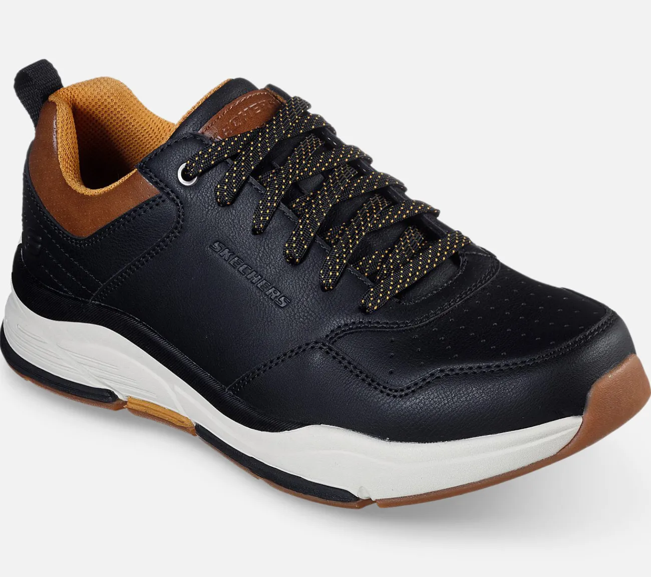 Få nogle alsidige stilpoint med langvarig komfort i Skechers Relaxed Fit: Benago – Treno. Med en snøret læderoverdel og en Skechers Air-Cooled Memory Foam indersål og Skechers Goga Mat Arch polstring for ekstra støtte.
