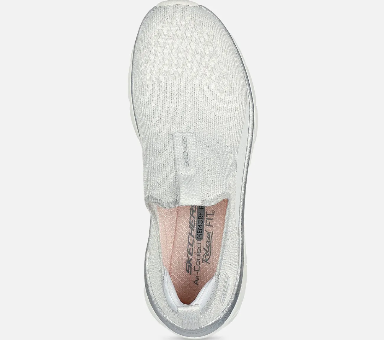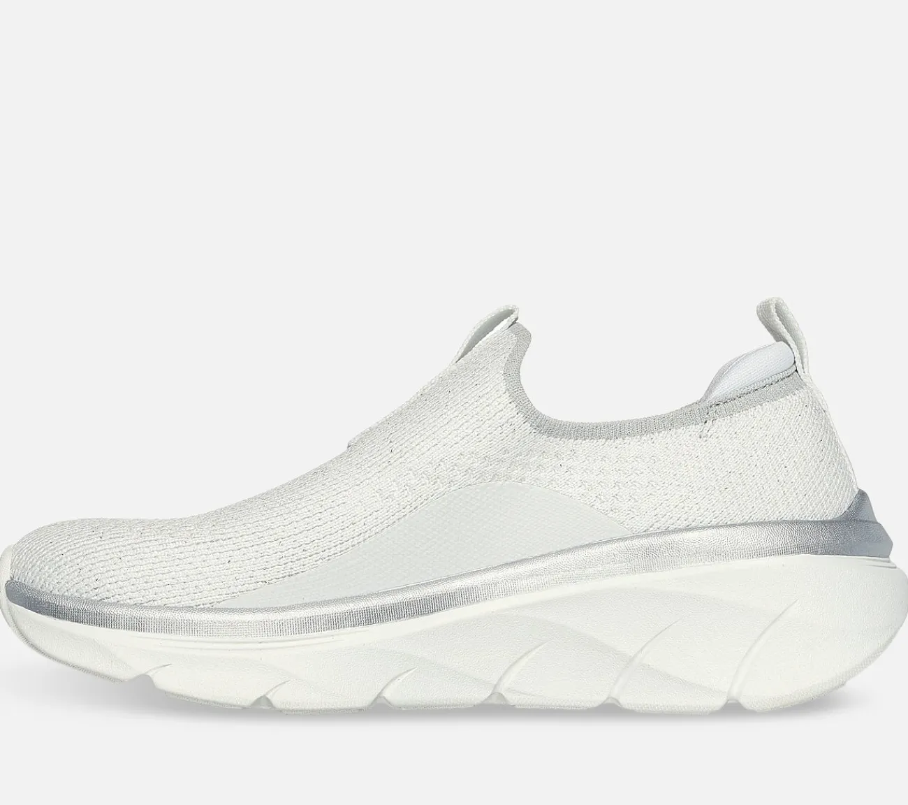 Nyd længere gåture med støttende komfort i Skechers Relaxed Fit: D’Lux Walker 2.0 – Sparkle Forever. Denne sporty sko uden snørebånd har en Stretch Fit strikket overdel, metallisk trimmet mellemsål og en polstret Skechers Air-Cooled Memory Foam indersål.