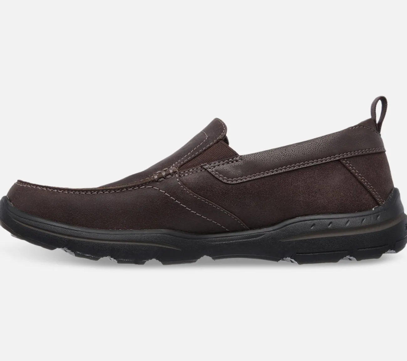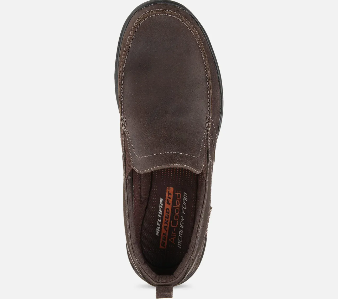 Opnå afslapning og komfort med Skechers Relaxed Fit: Harper – Forde. Glat fuldnarvet læderoverdel i en slip-on casual komfort loafer med Air-Cooled Memory Foam indersål.