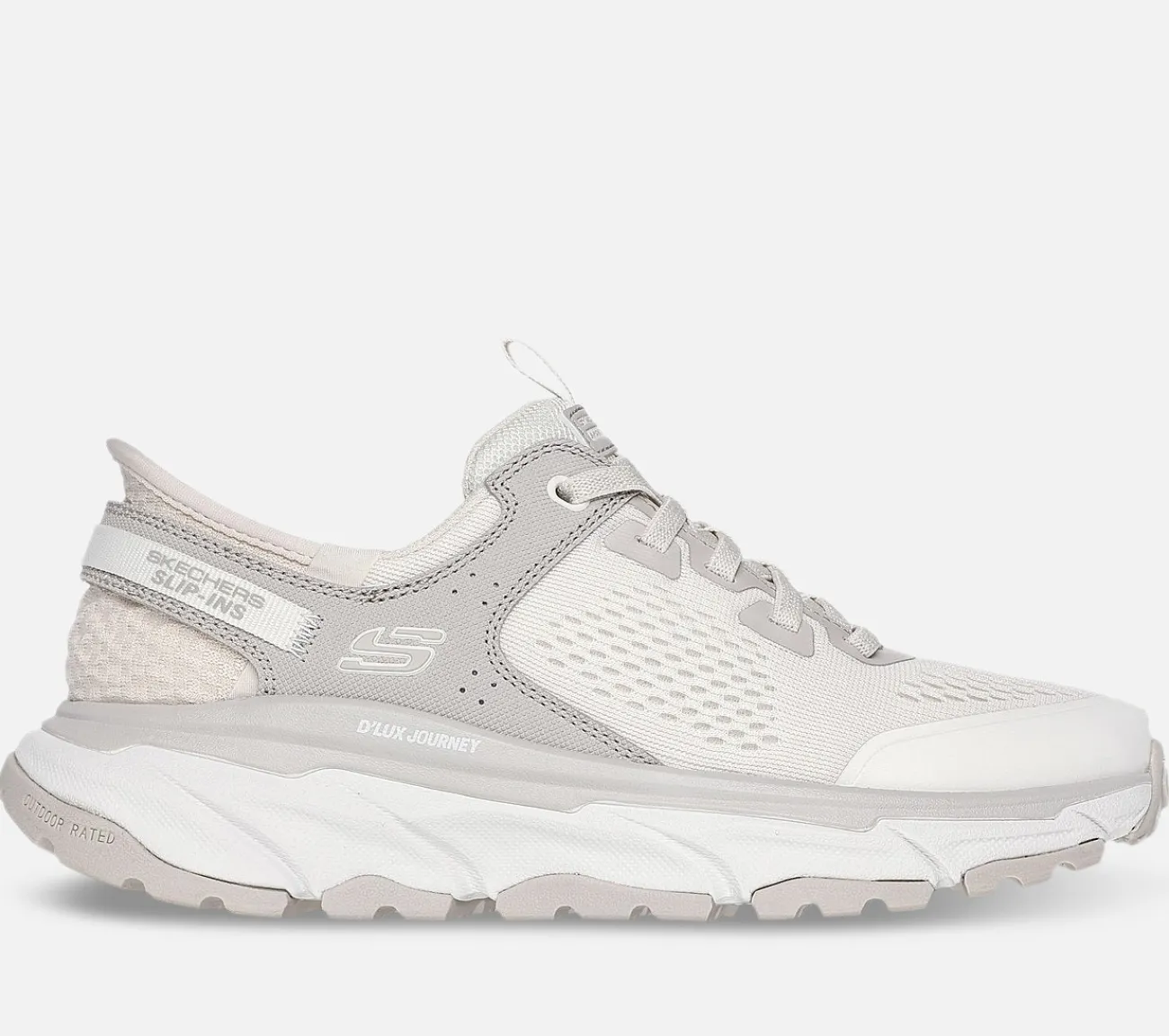 Nyd naturen i komfort, der er skabt til at tage dig længere, med Skechers Hands Free Slip-ins® Relaxed Fit®: D’Lux Journey – Newaygo. Denne outdoor sko er designet med vores eksklusive Heel Pillow™ og har en konstrueret mesh-overdel med elastiske snørebånd, en velpolstret platform-mellemsål og vores signatur Skechers Air-Cooled Memory Foam® indersål.