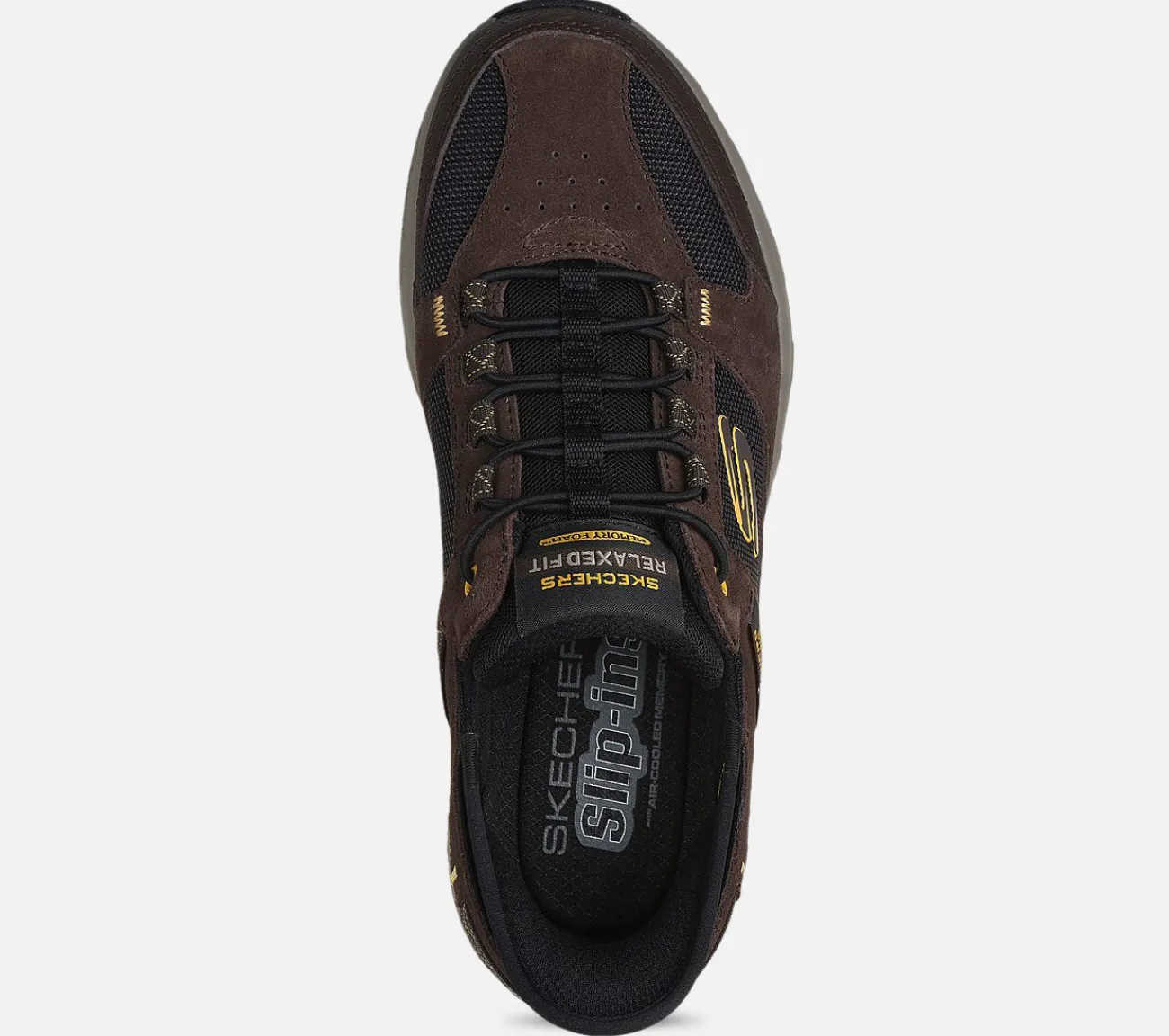 Gå på stierne i afslappet komfort med Skechers Relaxed Fit: Oak Canyon – Consistent Winner. Denne afslappede udendørs trail snøresko har en overdel i ruskind, syntetisk materiale og mesh med en Skechers Air-Cooled Memory Foam indersål.