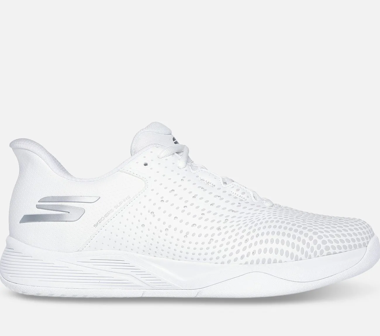 Gør dig klar til kampene med fantastisk komfort, der aldrig svigter, når du bærer Skechers Hands Free Slip-ins Relaxed Fit: Viper Court Reload – designet til Pickleball. Denne rummelige slip-ins har vores eksklusive Heel Pillow med en atletisk mesh og syntetisk screen print overdel, aftagelig Arch Fit indersål og let ULTRA FLIGHT polstring. Dette maskinvaskbare design er komplet med en Goodyear gummi ydersål, der er bygget til øget holdbarhed og kontrol på banens overflade.