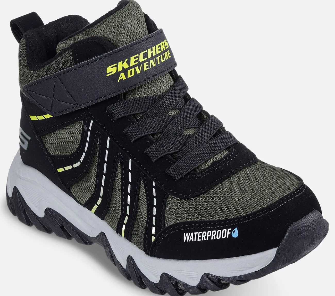 Bliv klar til det næste vandfyldte eventyr i Skechers Rugged Ranger – Storm Trail. Denne vandtætte vandrestil har en atletisk mesh- og syntetisk overdel med stretch-snørebånd, fleece foring, en justerbar vristrem, polstret komfort indersål og en holdbar højtrækkende ydersål.