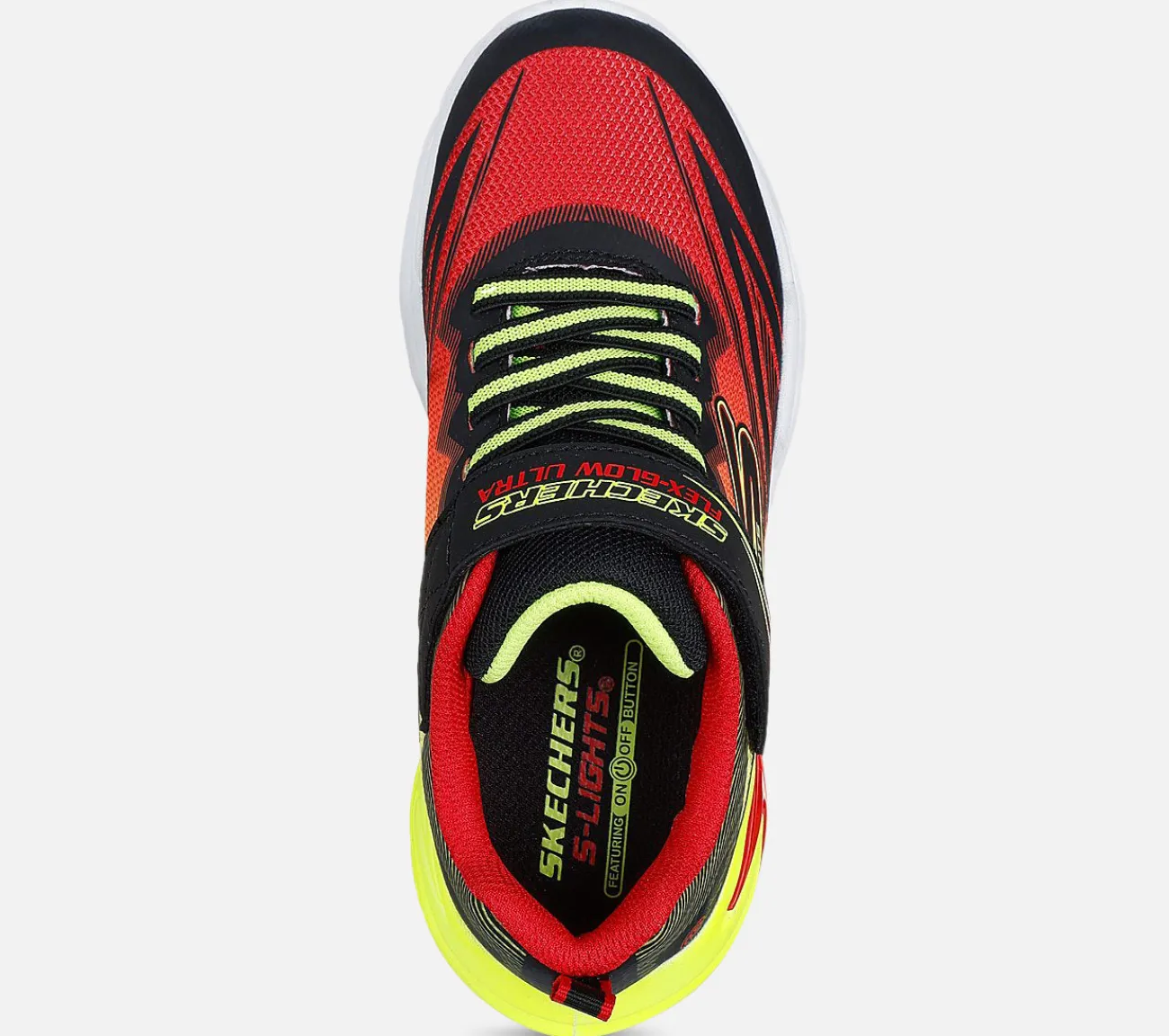 Giv deres dag et ekstra boost med Skechers S-Lights: Flex-Glow Ultra. Denne farverige sneaker har en ombre mesh-overdel med syntetiske detaljer, faste elastiske snørebånd, Skechers Adaptive Closure og en teknisk designet lysende mellemsål.