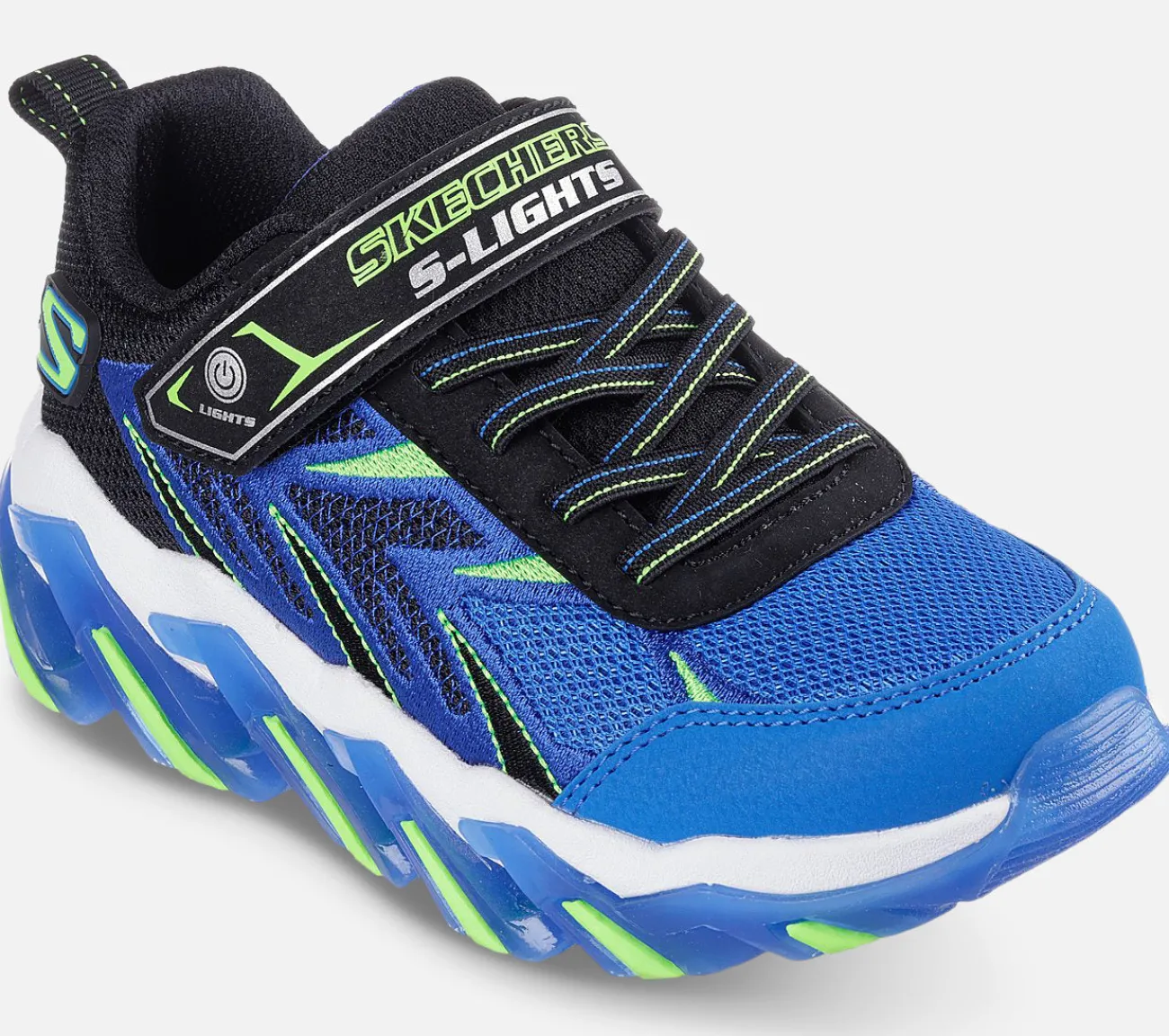 Tænd op for sjov med Skechers S-Lights: Mega Surge 2.0. Denne sporty børnesko har en overdel i mesh og syntetisk materiale med broderede detaljer, Skechers Adaptive Closure, stræksnørebånd og en støddæmpende mellemsål med lys.