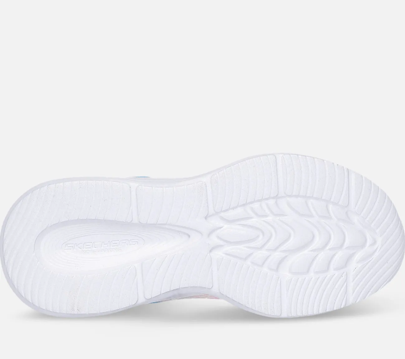 Bring sjov til sporty mode med Skechers S-Lights: Sola Glow – Ombre Deluxe. Denne aktive sko med flerfarvet lysdesign har en ombre mesh- og syntetisk overdel med strækbare snørebånd, justerbar rem over vristen og en velpolstret mellemsål, der lyser op.