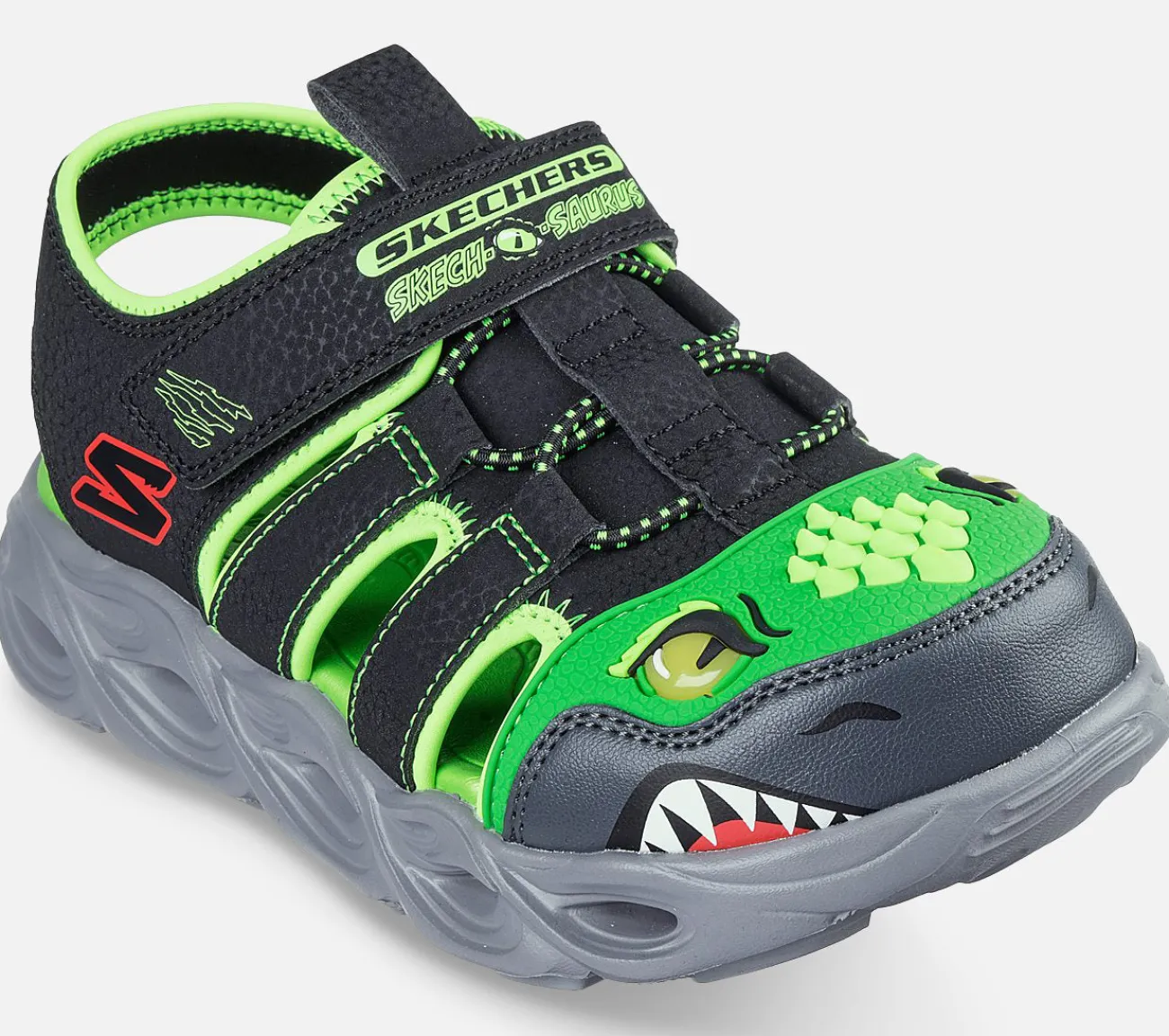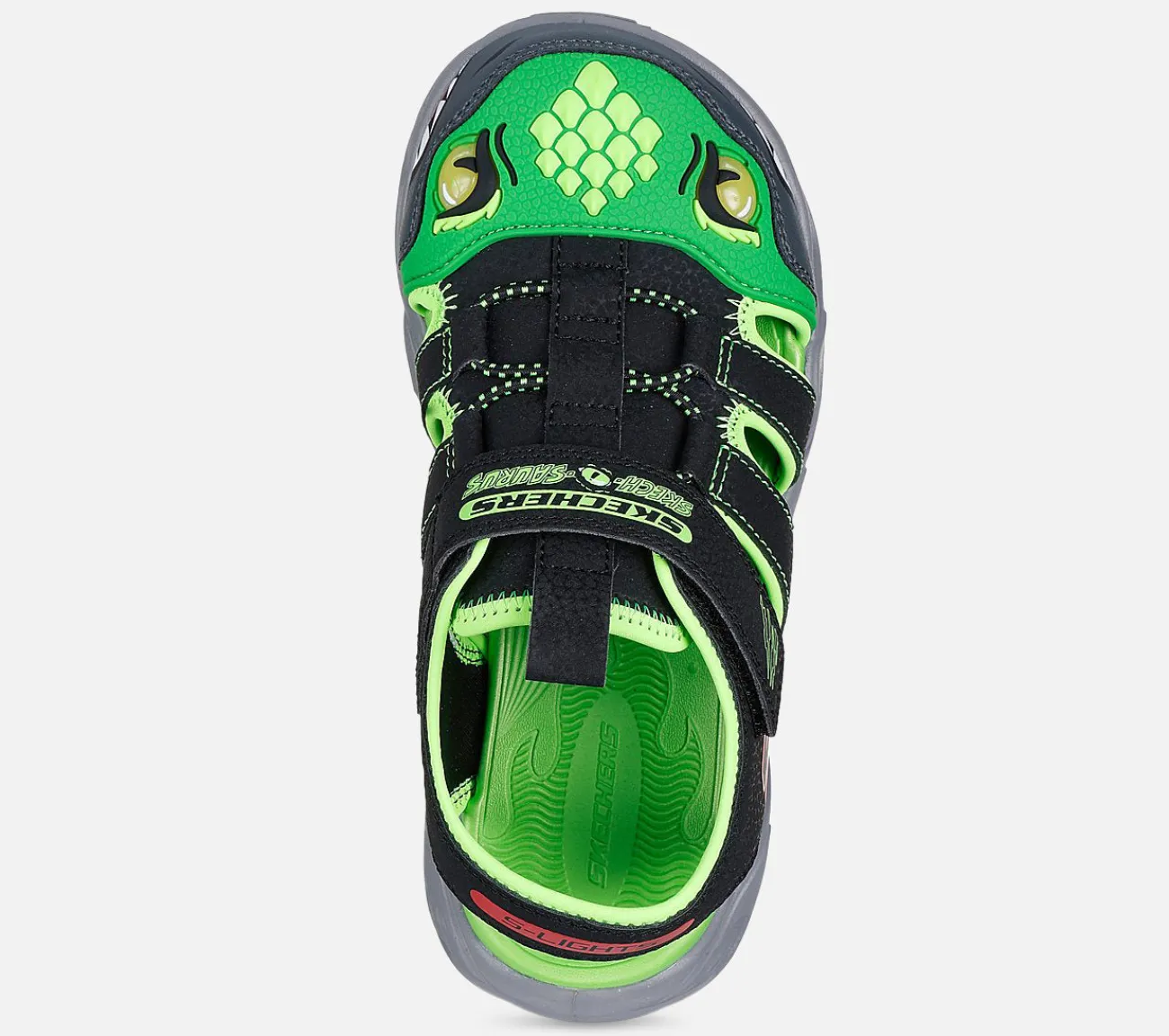 Gør sommeren endnu sjovere med Skechers S-Lights: Thermo-Flash – Hydro-Flare. Denne tematiske lukket-tå sportssandal har en syntetisk overdel, en støttende lysende mellemsål, Skechers Adaptive Closure og en polstret komfort-indersål.