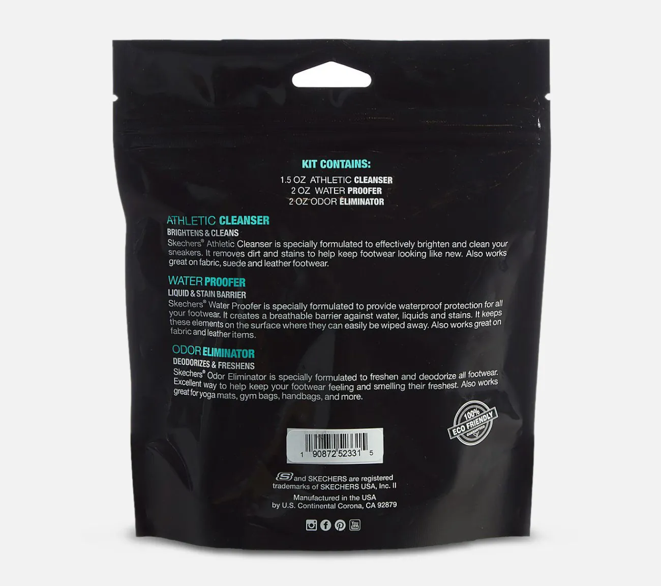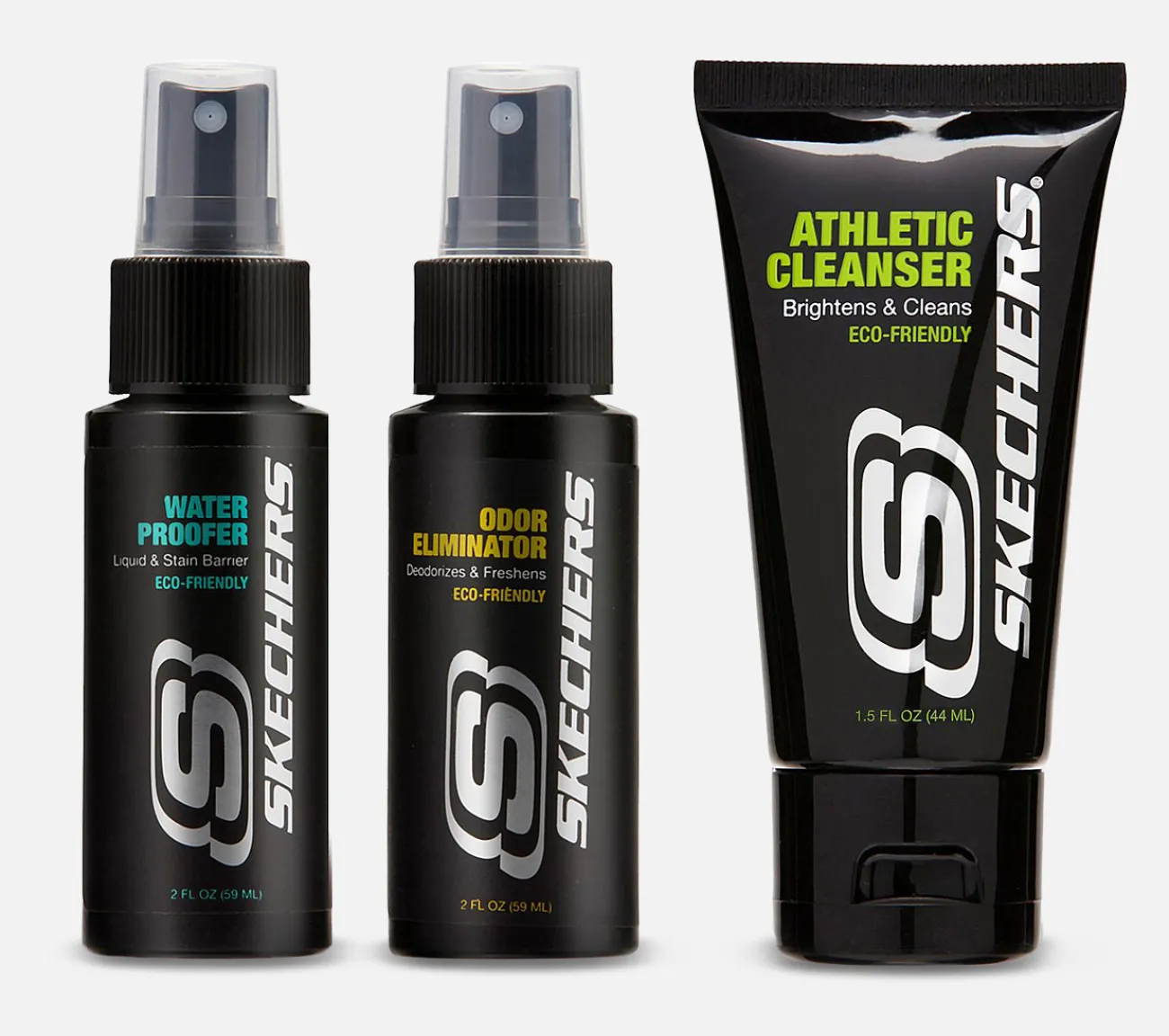 Hold dine sko i topform med Skechers Shoe Care Kit. Dette essentielle skopleje sæt indeholder: Skechers Odor Eliminator, Skechers Water Proofer og Skechers Athletic Cleanser i rejsestørrelse.