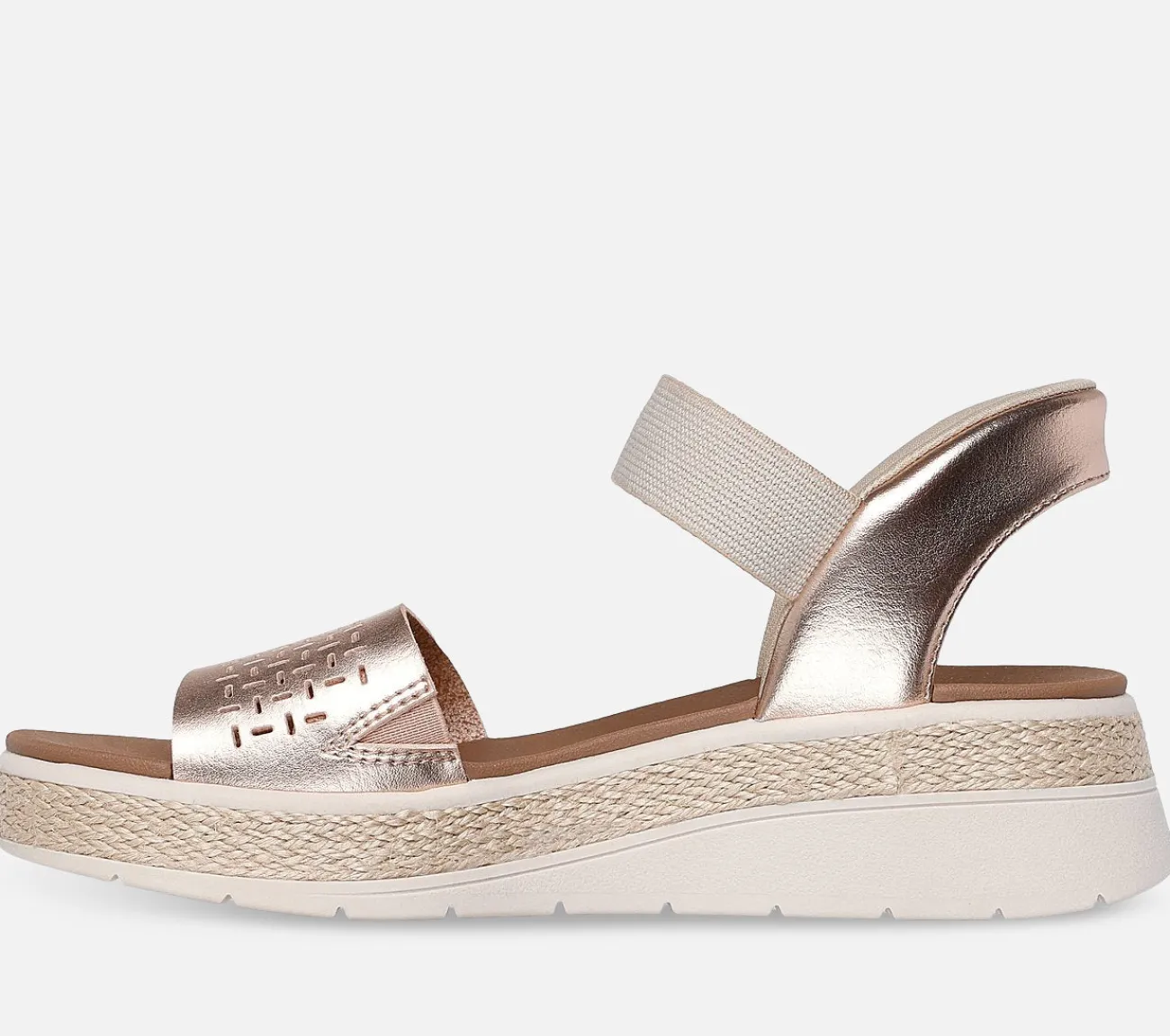 Træd ind i afslappet, luftig stil med Skechers Hands Free Slip-ins: BOBS fra Skechers Sun Ray – Step Aside. Designet med vores eksklusive Heel Pillow, har denne sandal en vegansk læderoverdel med elastisk vristrem, jutedetaljer på mellemsålen og en polstret Skechers Plush Foam komfort-indersål. BOBS fra Skechers er engageret i at redde kæledyr i nød.