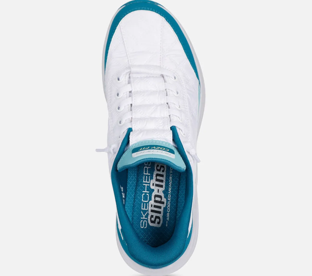 Omfavn dine fødder med ubesværet komfort i Skechers Hands Free Slip-ins: Contour Foam – Cozy Fit. Designet med vores eksklusive Heel Pillow, har denne veganske sko en quiltet Cozy Fit og syntetisk overdel med fastgjorte stretch-snørebånd, Contour Foam mellemsåls polstring og en polstret Skechers Air-Cooled Memory Foam indersål.