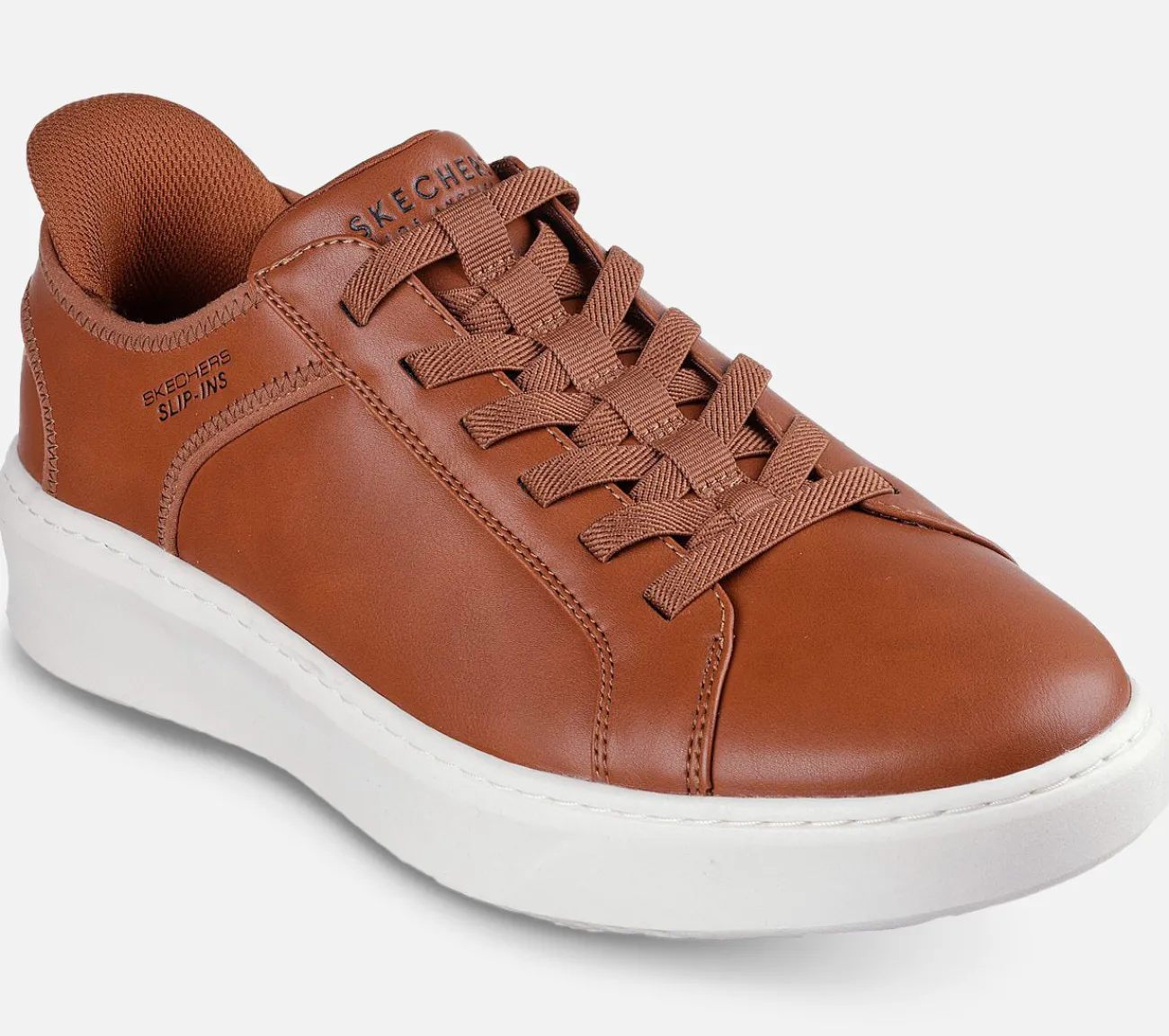 Opgrader dit look med en moderne klassiker i Skechers Hands Free Slip-ins: Court Break – Double Vented. Denne courtsko har en syntetisk overdel med elastiske snørebånd og med en hands-free Skechers Slip-ins formet hælpanel er det nemt og bekvemt at tage skoen på uden at bruge hænderne. Med Skechers Air-Cooled Memory Foam indersål er du sikret høj åndbarhed og god komfort.