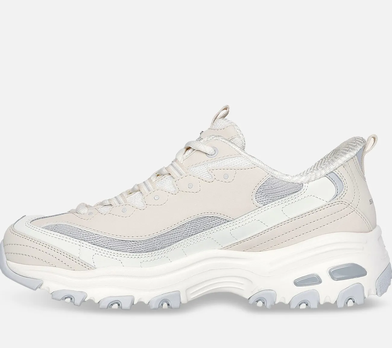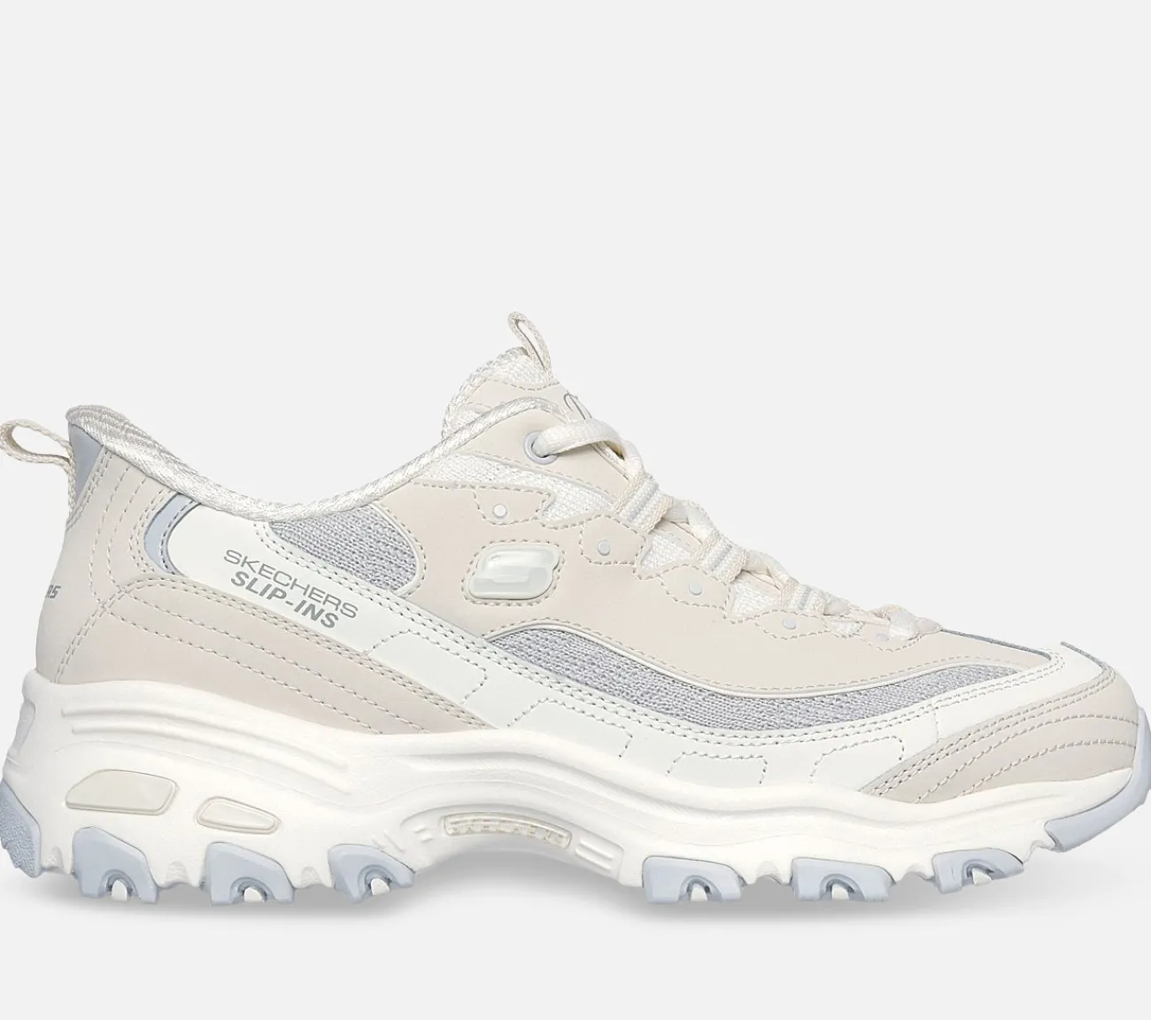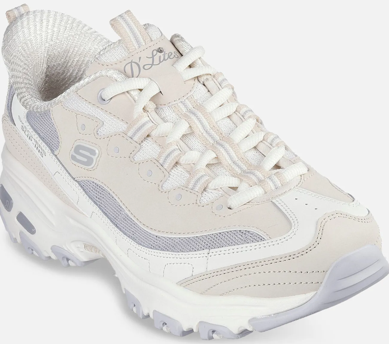 Træd ind i sporty stil og ubesværet komfort med Skechers Hands Free Slip-ins: D’Lites – Smooth Nostalgia. Designet med vores eksklusive Heel Pillow, har denne klassiske sneaker en lagdelt læder-, mesh- og strikoverdel, snørelukning med stribede snørebåndsstropper samt en polstret Skechers Air-Cooled Memory Foam indersål.