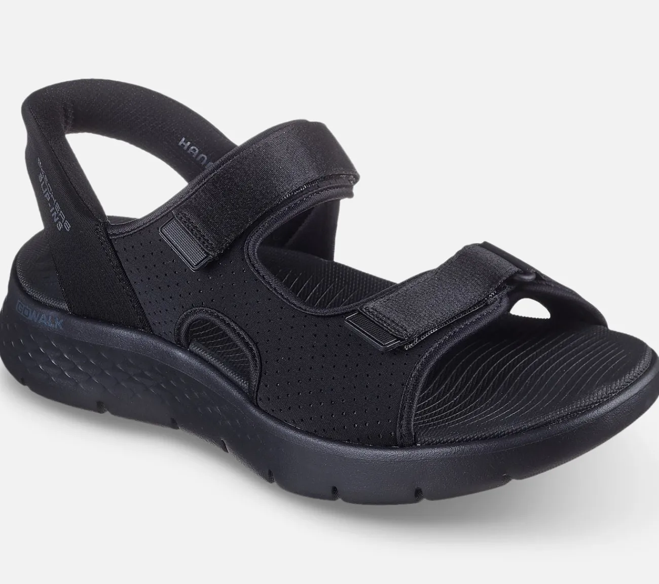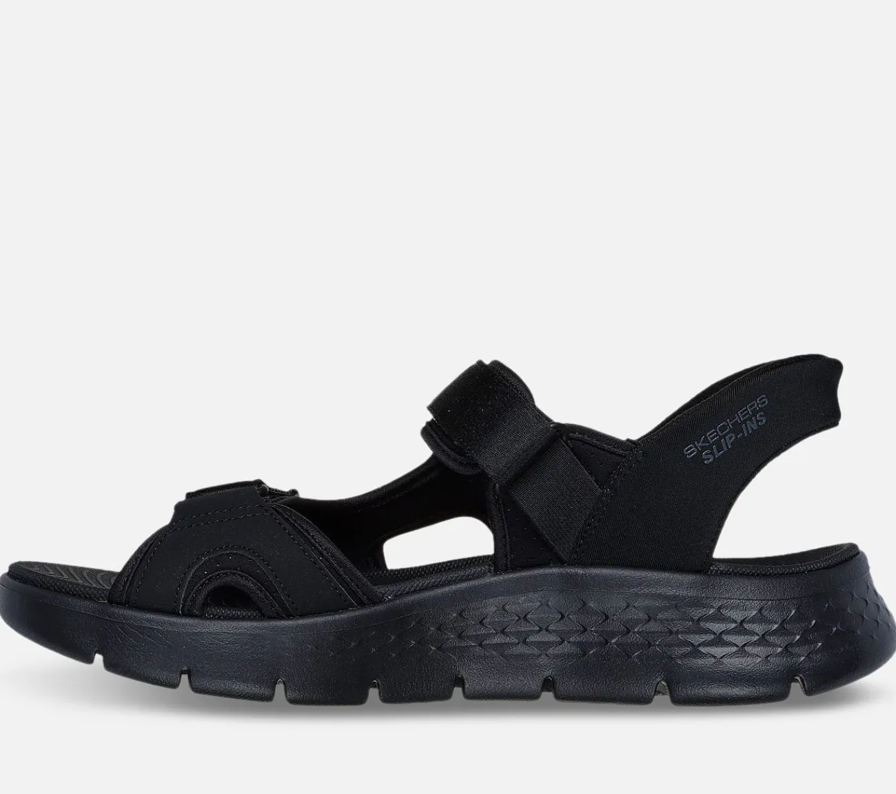 Oplev en ubesværet måde at bære din yndlingssportssandal på med Skechers Hands Free Slip-ins®: GO WALK® Flex Sandal – Easy Entry. Denne atletiske sandal med stropper er designet med vores Heel Pillow og har en vævet overdel med en justerbar strop over vristen, en kontureret Goga Mat®-indersål, ULTRA GO®-letvægtspolstring og et bagstykke om hælen.