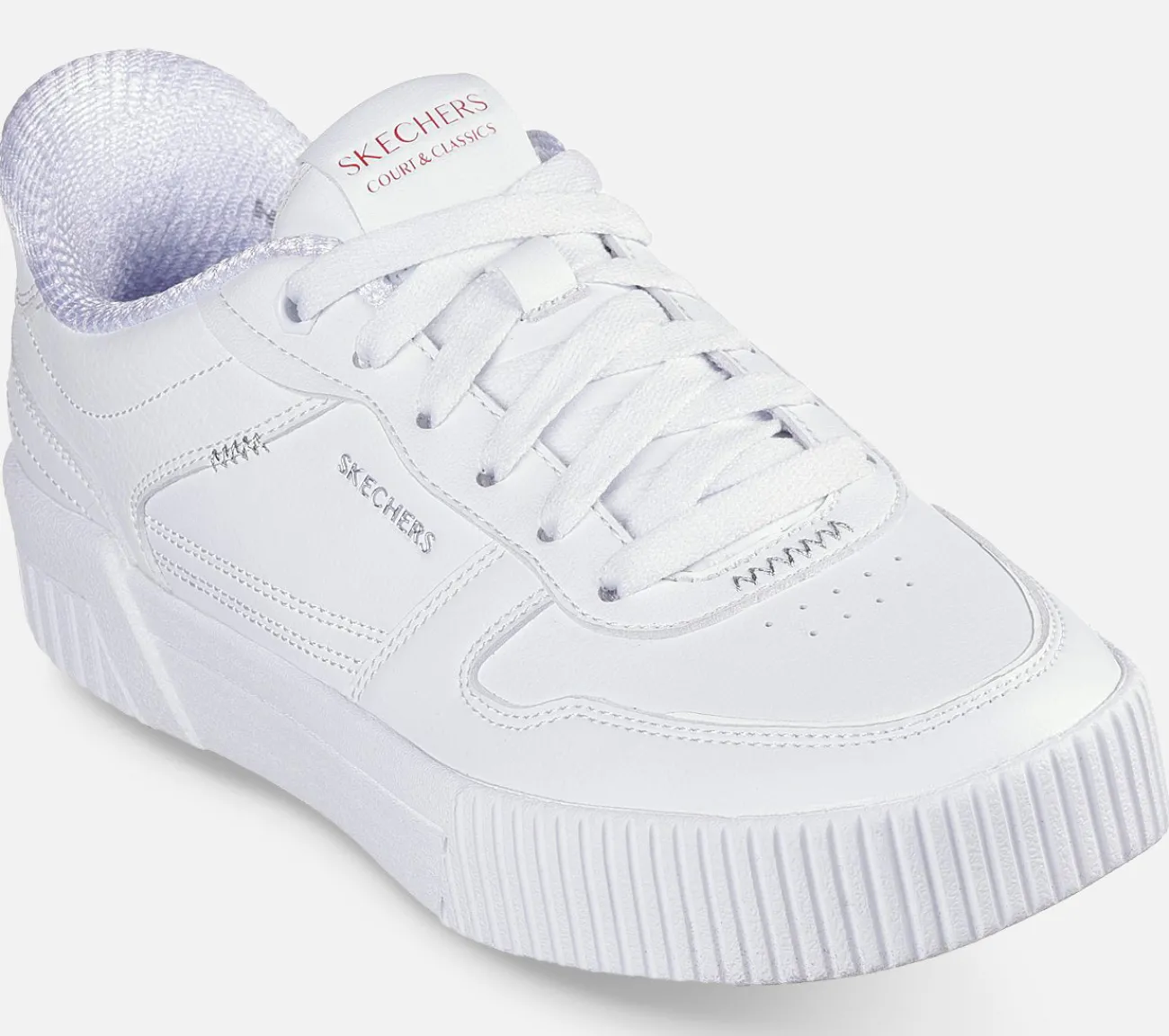 Just Step In med et klassisk streetlook med Skechers Hands Free Slip-ins®: Jade – Put It In Neutral. Denne slip-on har et ægte streetlook og er designet med vores eksklusive Heel Pillow, en overdel af duralæder med snører og en polstret Skechers Air-Cooled Memory Foam®-indersål.