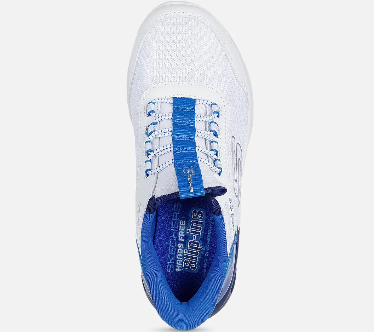 Leg hele dagen i komfort med Skechers Hands Free Slip-ins: Microspec Max – Brisk-Stripe. Designet med vores eksklusive Heel Pillow, har denne sporty sneaker en mesh- og syntetisk overdel med faste stretch-snørebånd, en Skechers Air-Cooled Memory Foam indersål og en synlig Skech-Air airbag-mellemsål.