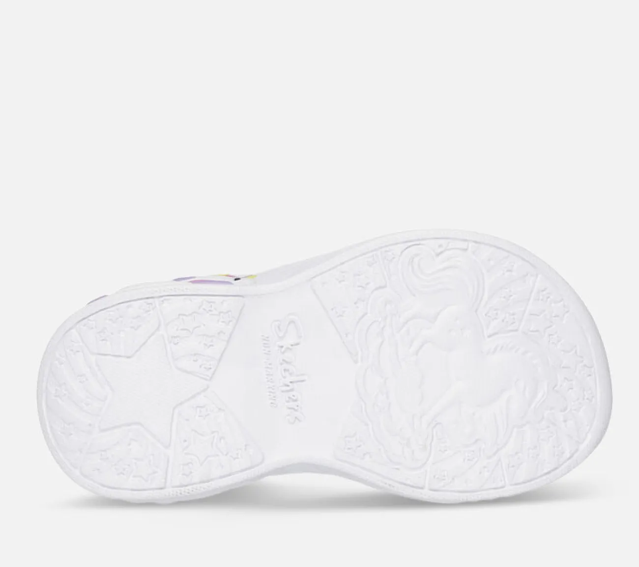 Oplys deres skridt med lidt enhjørningemagi i Skechers Unicorn Dreams Sandal – Dreamy Unicorns. Dette lysende design har en glitrende vævet stropoverdel med Skechers’ adaptive lukning, samt en skulptureret enhjørningemellemsål.