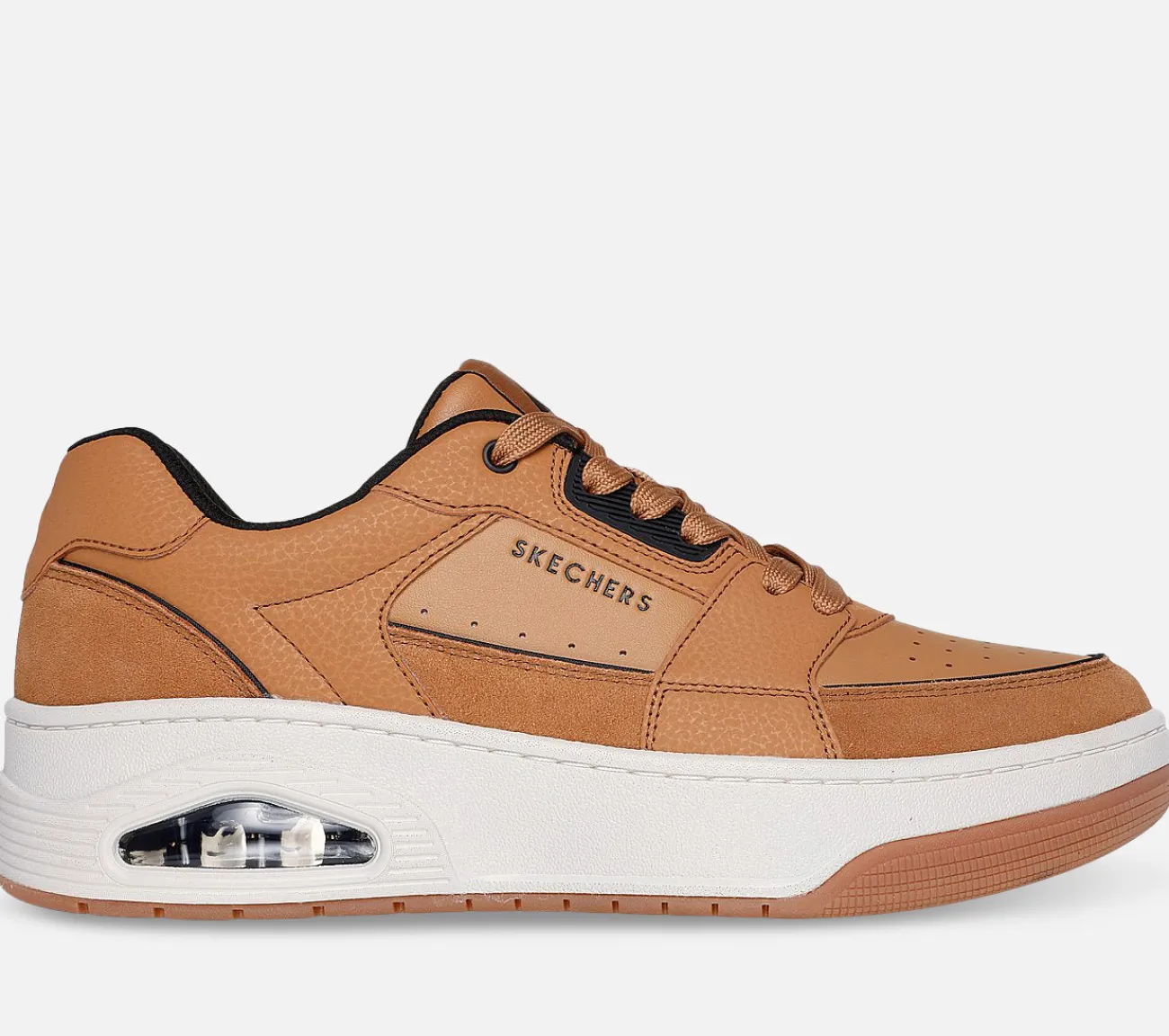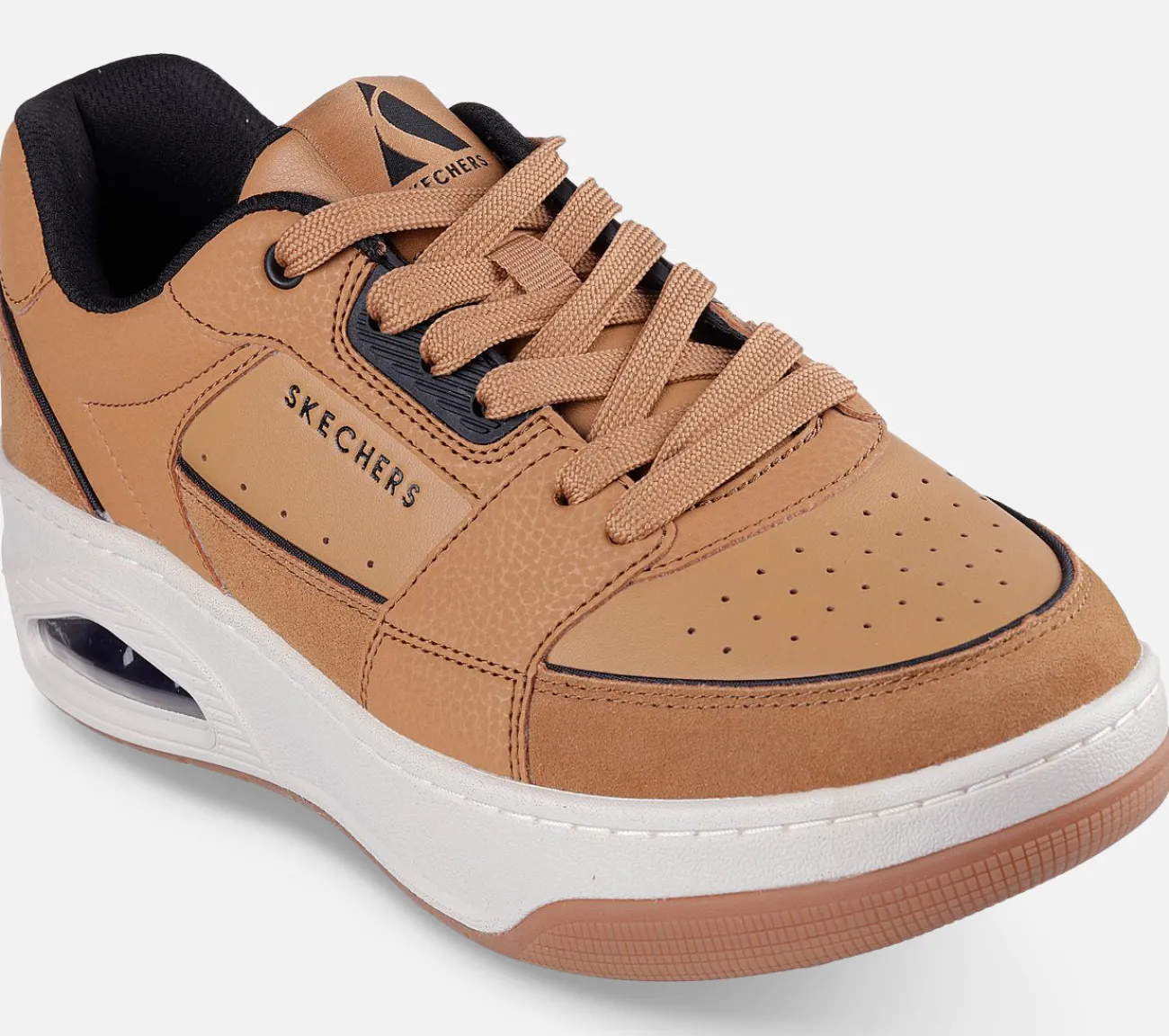 En ikonisk klassiker får en frisk opdatering med Skechers Street Uno – Low Post Match. Denne sko i court-stil har en overdel af ruskind og duraleather samt en Skechers Air-Cooled Memory Foam indersål og en synlig Skech-Air airbag mellemsål.