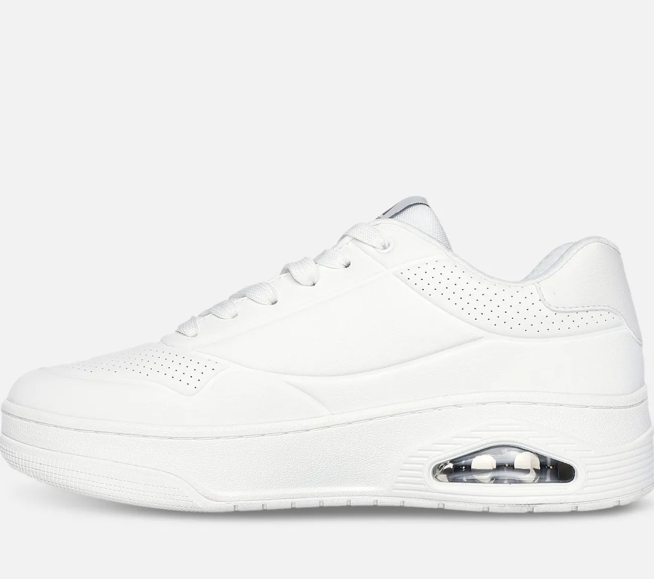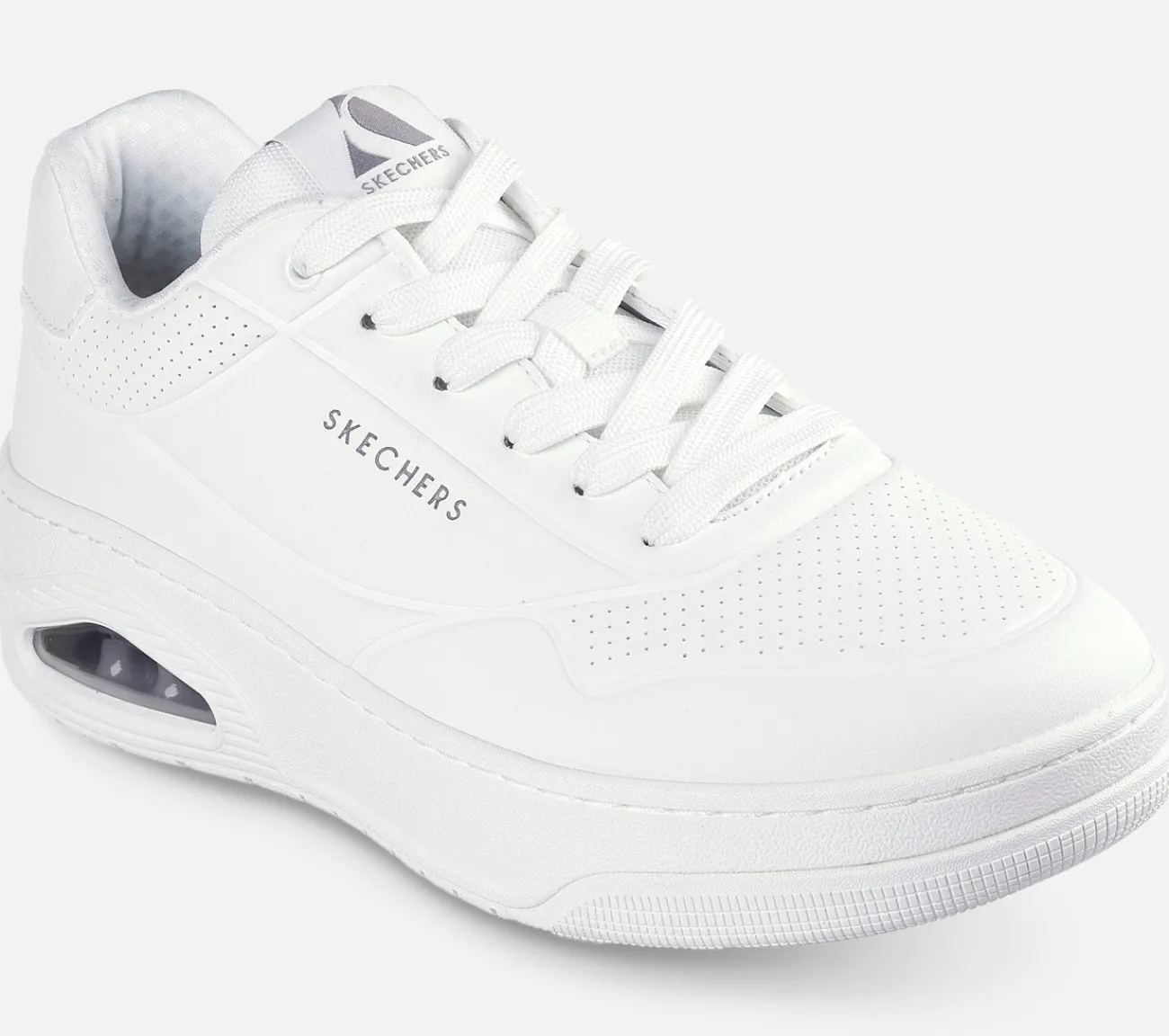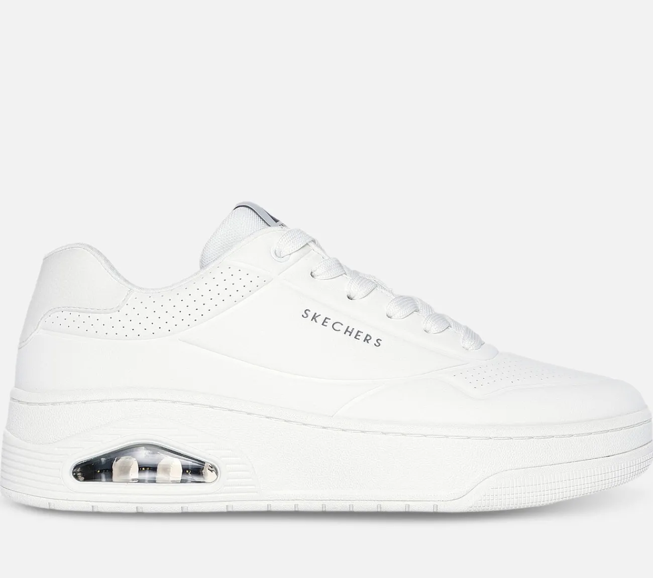 En ikonisk klassiker får en frisk opdatering med Skechers Street Uno – Court. Denne snøresneaker i court-stil har en duraleather overdel med en polstret Skechers Air-Cooled Memory Foam indersål og en synlig Skech-Air airbag mellemsål.