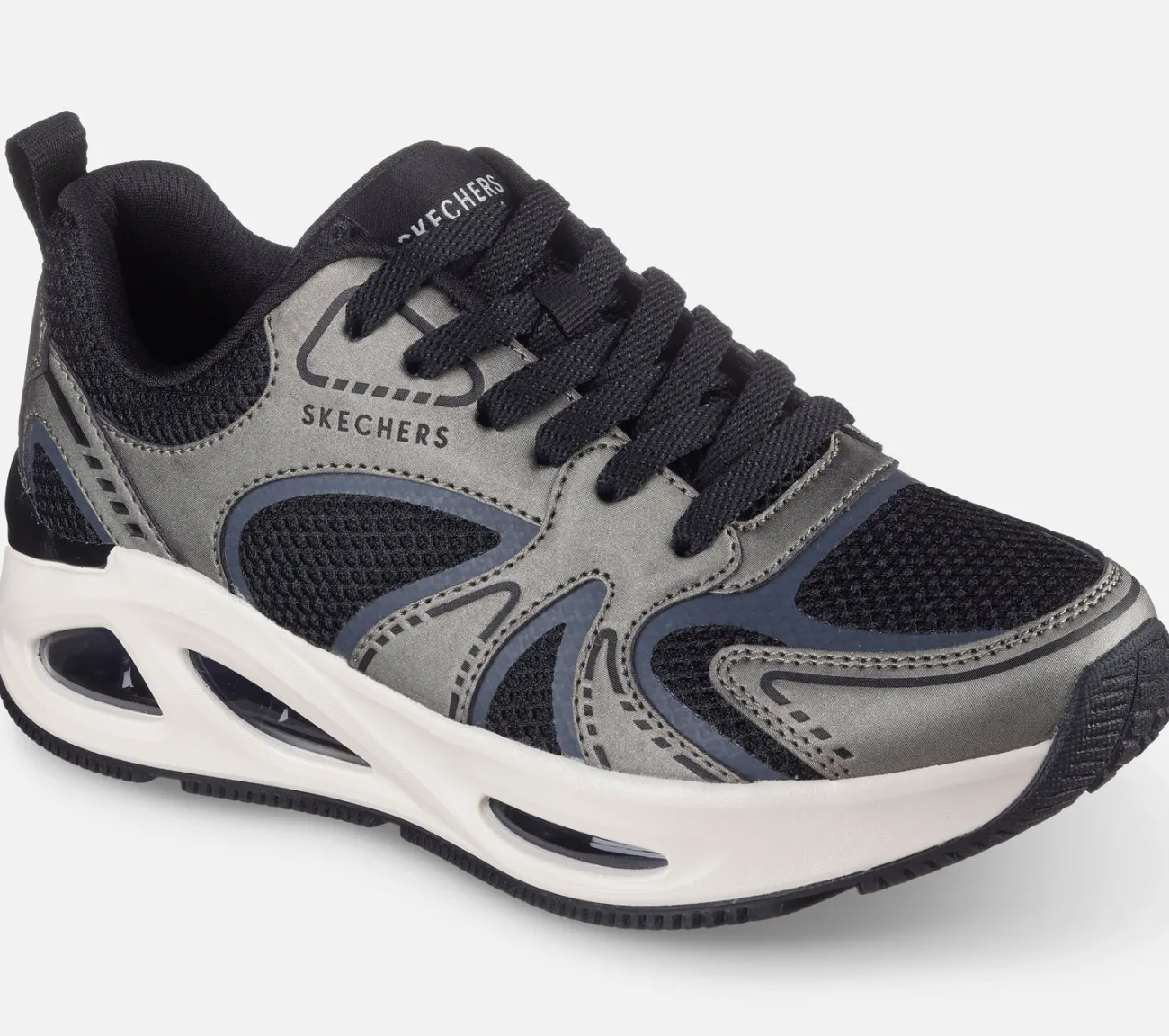Lad din stil skinne i Skechers Street™ Uno Ego – Illustris Air. Denne sporty modesneaker med snørebånd har en mesh- og shimmer duraleather-overdel, en synlig Skech-Air® luftdæmpet mellemsål og en Skechers Air-Cooled Memory Foam® indersål.