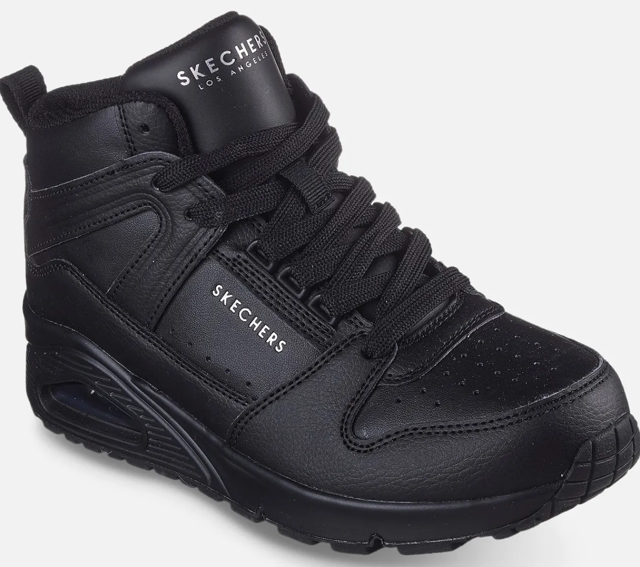 Hold din stil frisk og cool med Skechers Street Uno – High Regards. Denne high-top sko har en snøret overdel i duralæder med synlige airbag detaljer i mellemsålen og en Skechers Air-Cooled Memory Foam indersål.