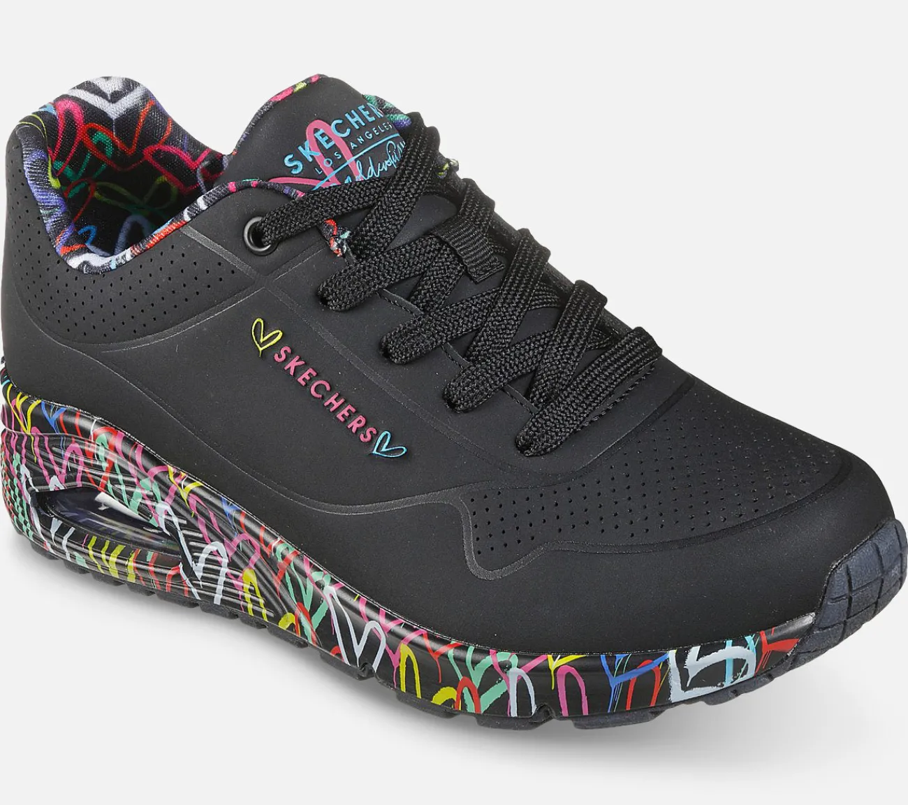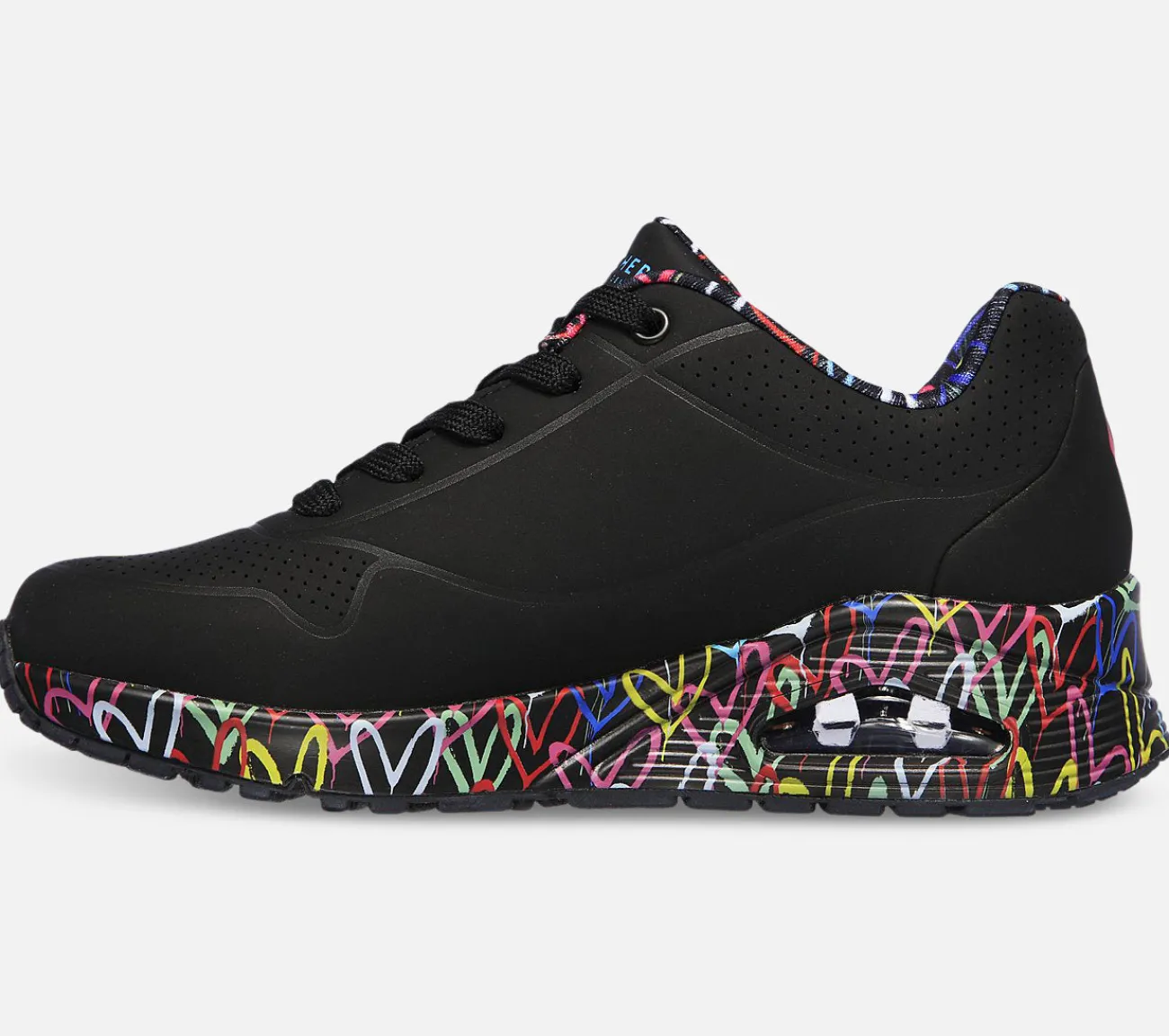 Den internationalt kendte kunstner James Goldcrown bringer sine ikoniske Lovewall-hjertedesigns til Skechers i dette inspirerende samarbejde. Med denne flotte sko får du en super kreativ sko som kan pifte ethvert outfit op.
